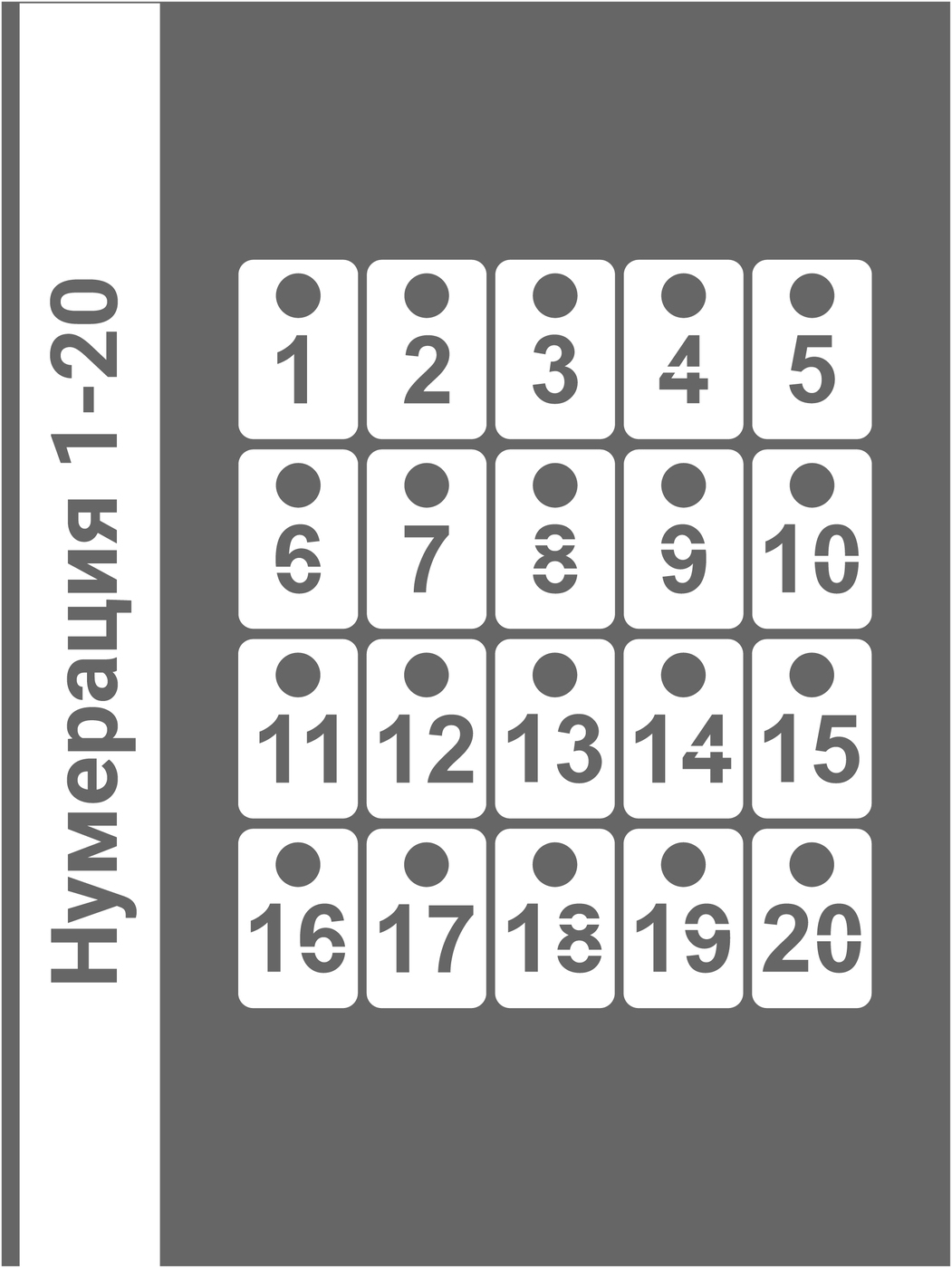Номерки гардеробные о 1 до 20 / прямоугольные / круглое ушко 15 мм / молочный акрил