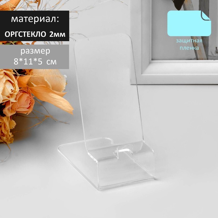 Подставка под телефон 80*110*50, оргстекло 2 мм, прозрачный, В ЗАЩИТНОЙ ПЛЁНКЕ