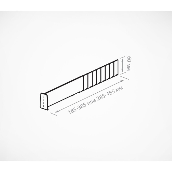 Пластиковый обламывающийся разделитель высотой 60 мм c передним ограничителем 60 мм, L 185-385 мм