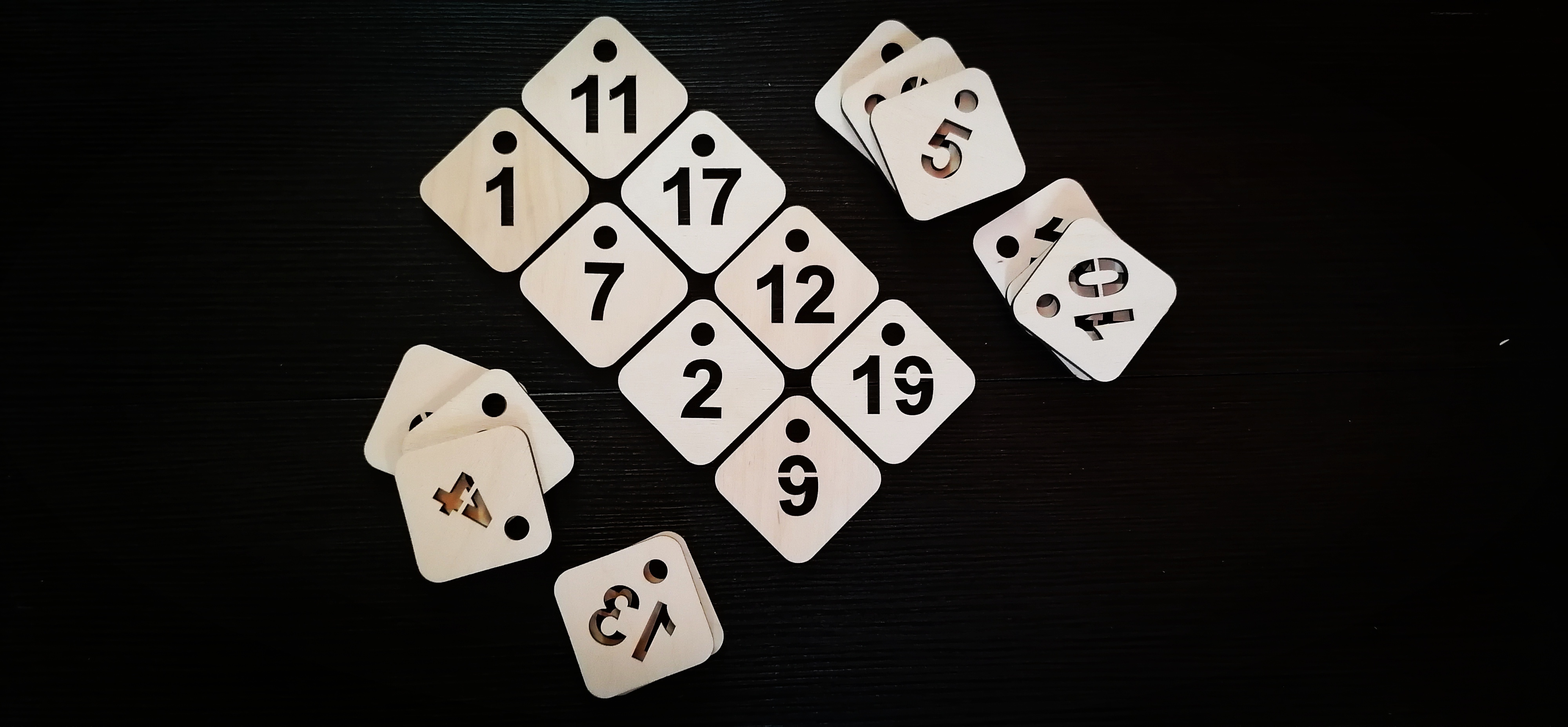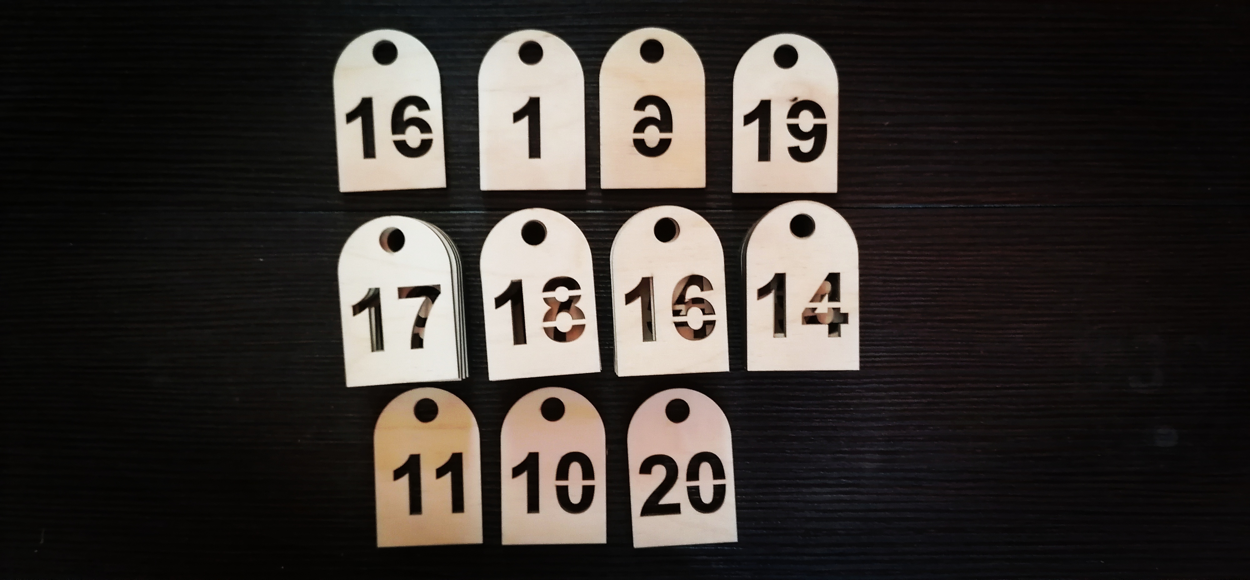 Номерки гардеробные от 1 до 20 / Форма "яйцо" / ушко 10 мм / фанера 3 мм