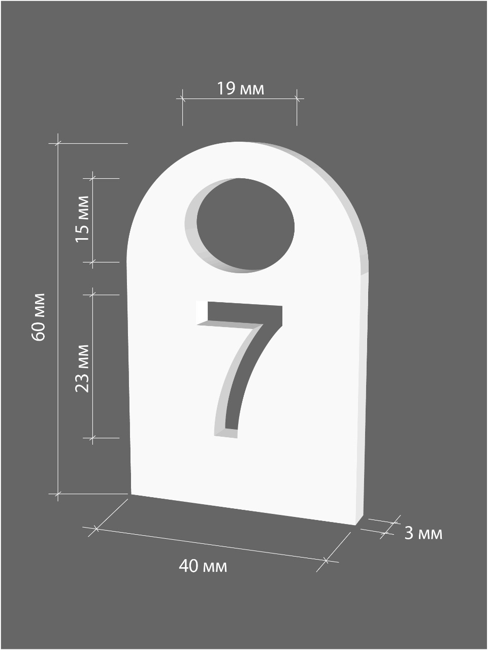 Номерки гардеробный от 1 до 20 / полукруглые / ушко 15 мм / молочный акрил