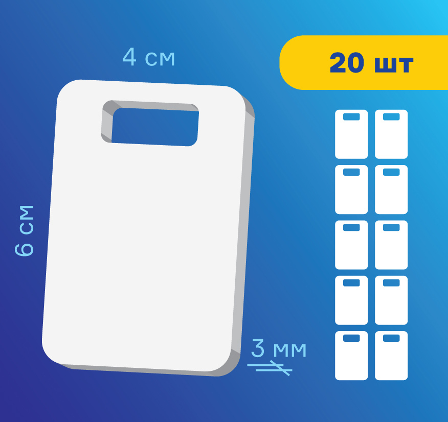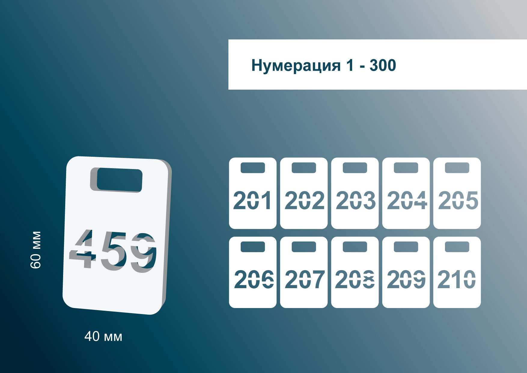 Номерки гардеробные от 1 до 300 / прямоугольные / ушко 9х20 мм / молочный акрил 3 мм