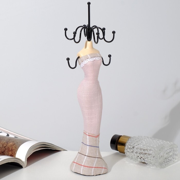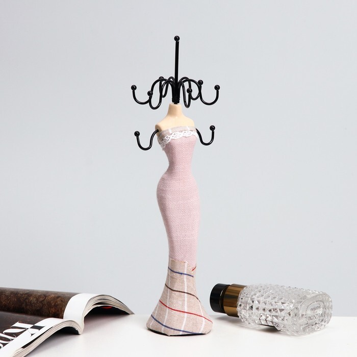 Подставка для украшений "Силуэт девушки в платье", h:28 см, цвет льна