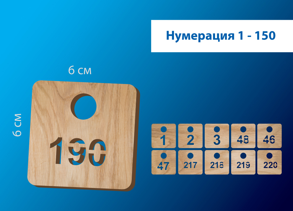 Номерки гардеробные от 1 до 300 / Форма "квадрат" / ушко 15 мм / молочный акрил 3 мм