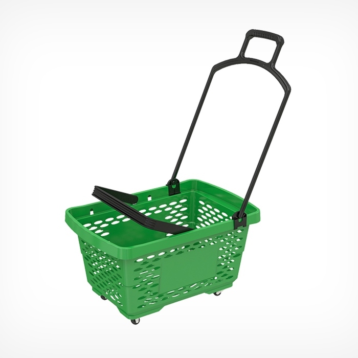 Корзина-тележка на 4 колесах пластиковая, 28 л, с 2 пластиковыми ручками, цвет зелёный