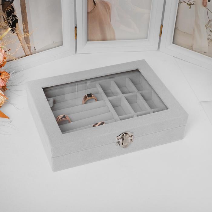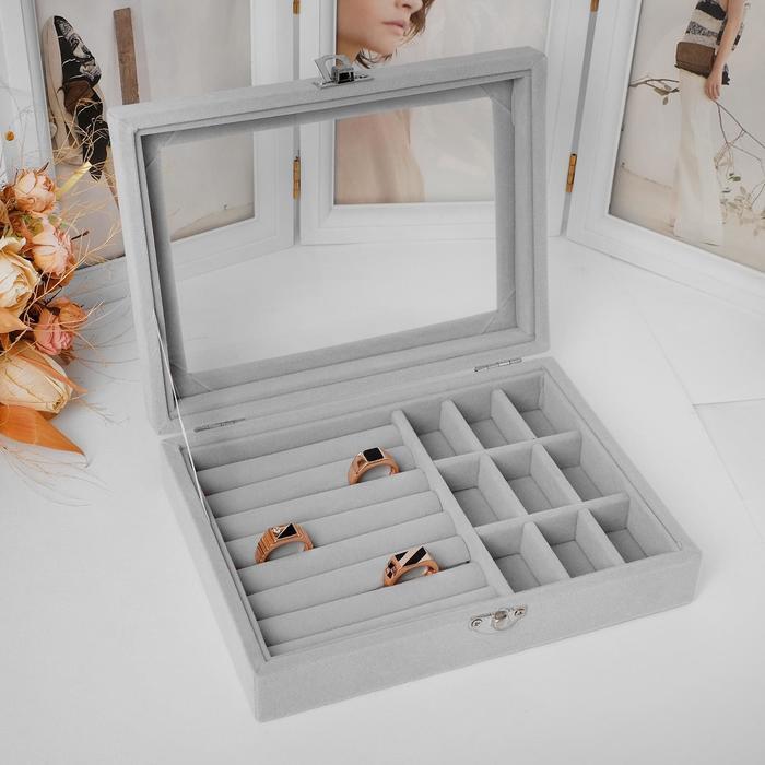Подставка для украшений "Шкатулка", 7 рядов, 9 ячеек, 20*15*4,5, цвет серый