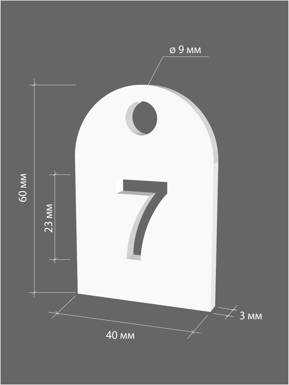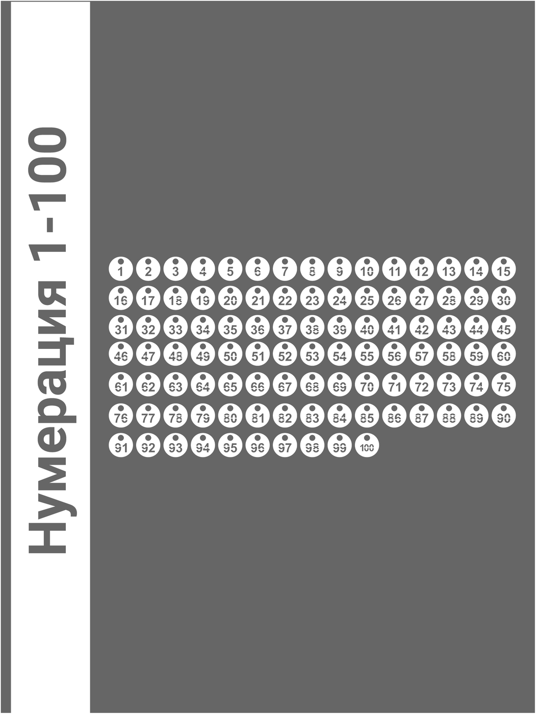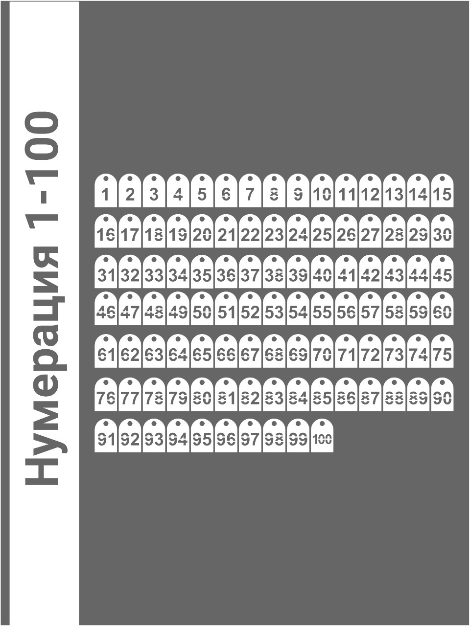 Номерки гардеробные от 1 до 100 / полукруглые / ушко 9 мм / молочный акрил