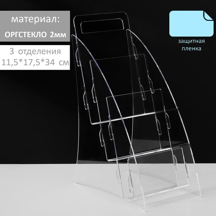 Диспенсер под еврофлаер 11,5*17,5*34 см, на 3 отделения, оргстекло 2 мм В ЗАЩИТНОЙ ПЛЁНКЕ