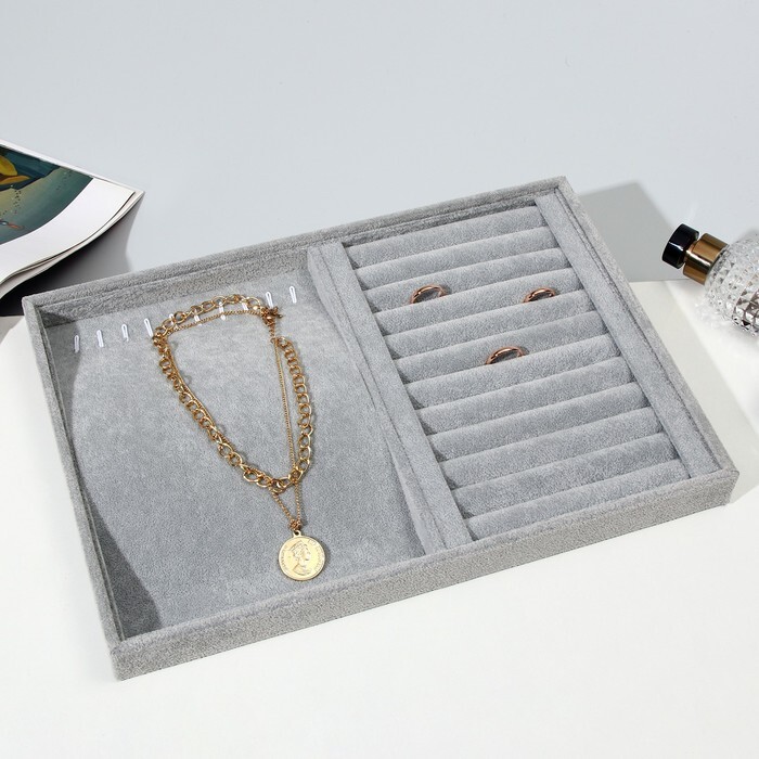 Подставка универсальная 10 крючков и 12 полос для колец, 35*24*3, цвет серый