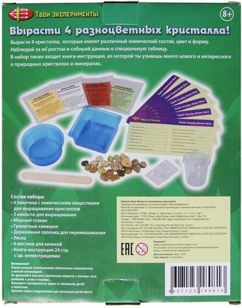 Набор для исследований Новый формат Вырасти 4 разноцветных кристалла