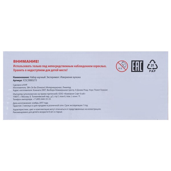 Набор для исследований HLB Эксперимент. Извержение вулкана (H.L.B) - 1CSC20003273