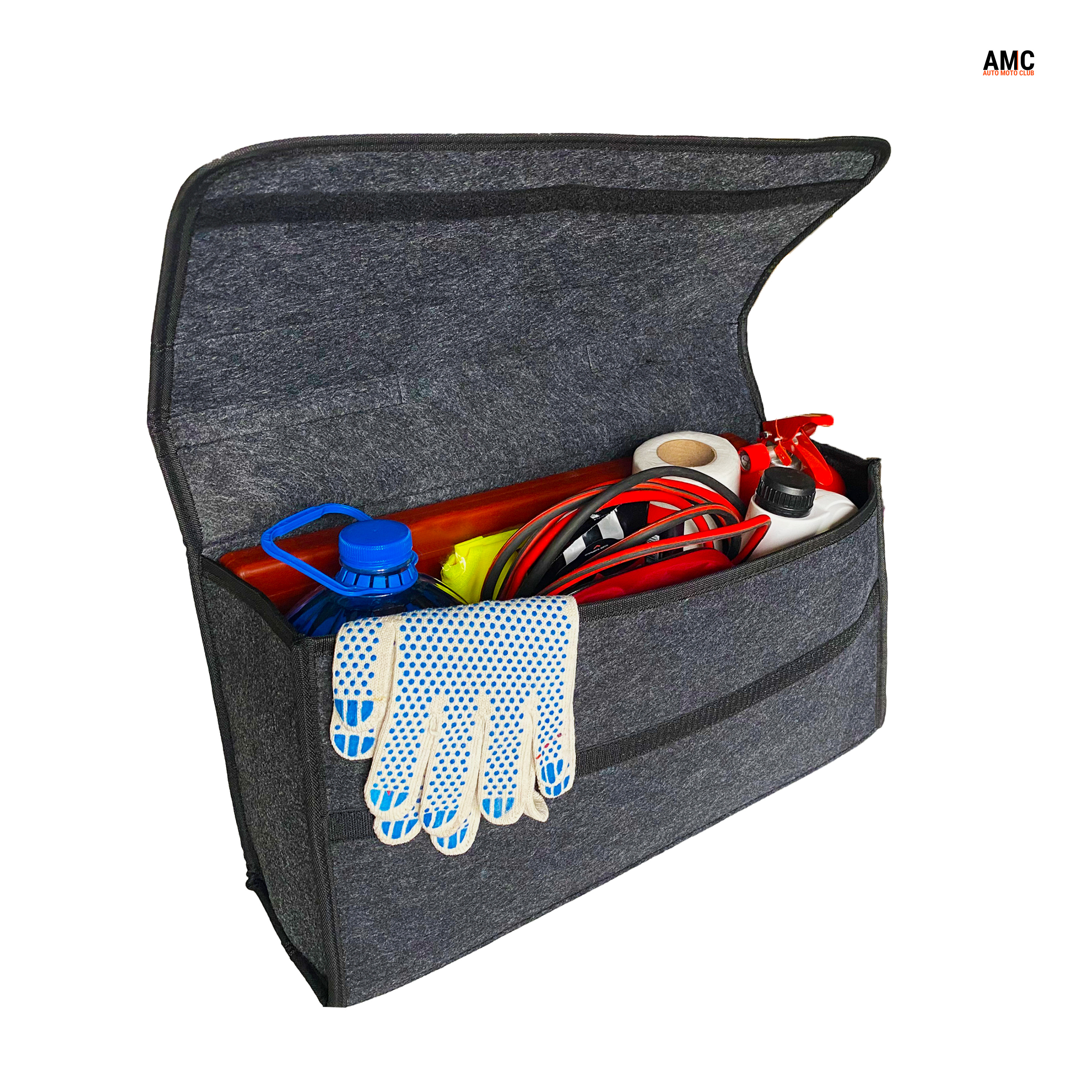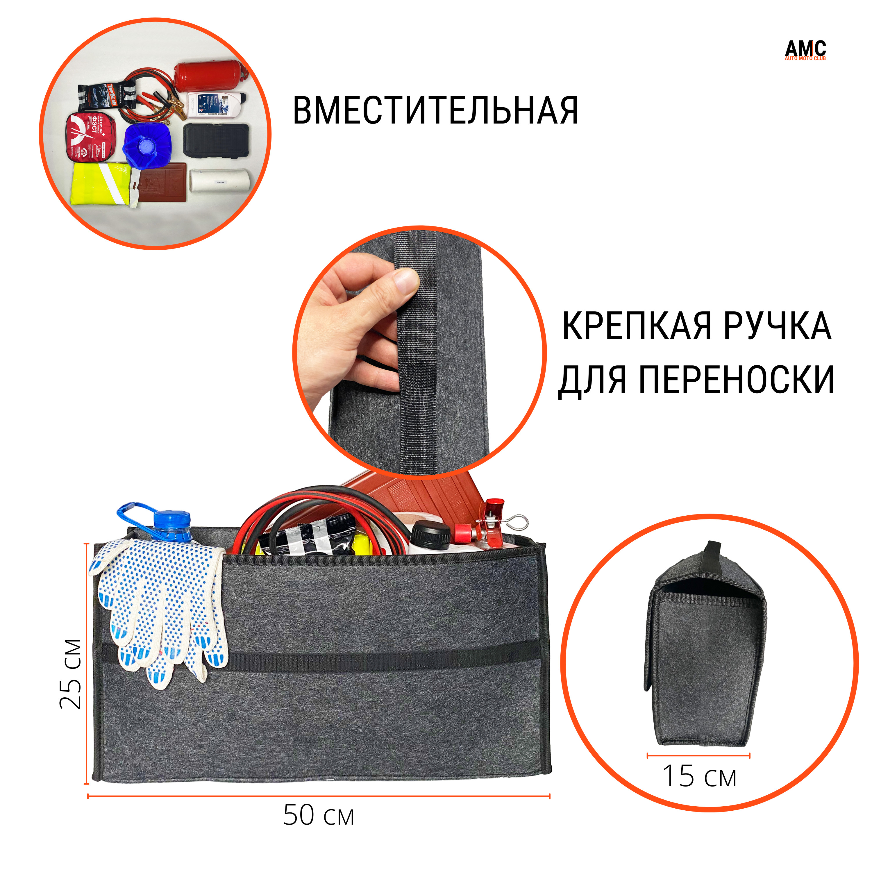 Автомобильный органайзер в багажник / с синей нитью ViceCar (светло-серый кант)