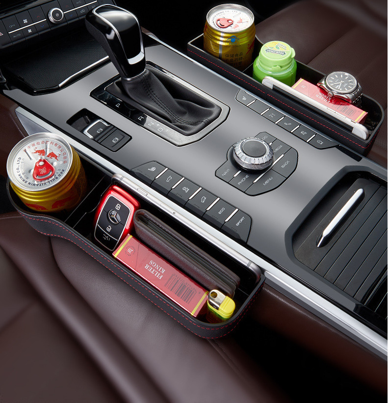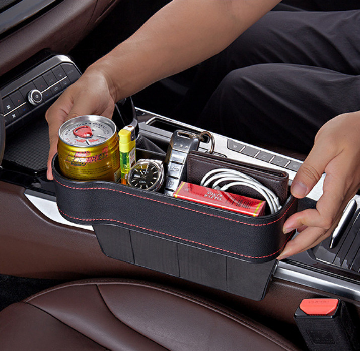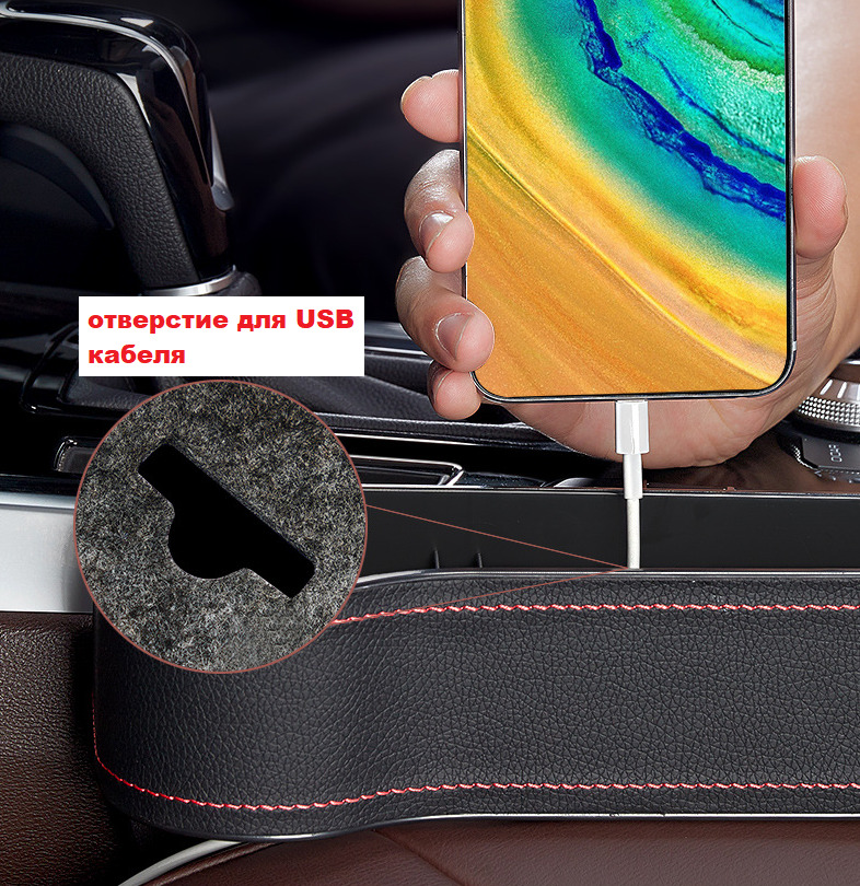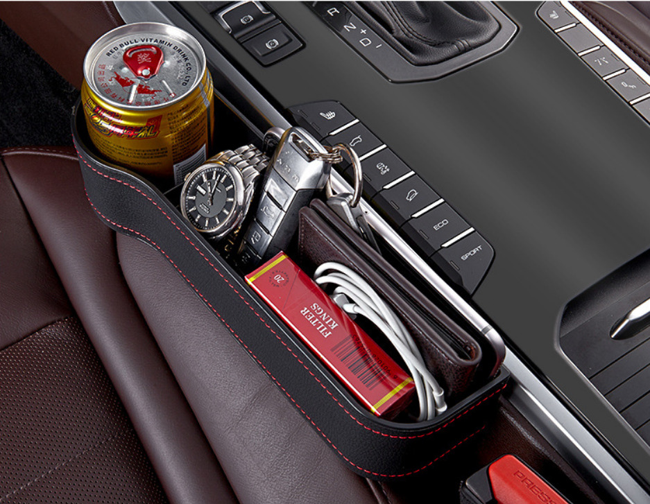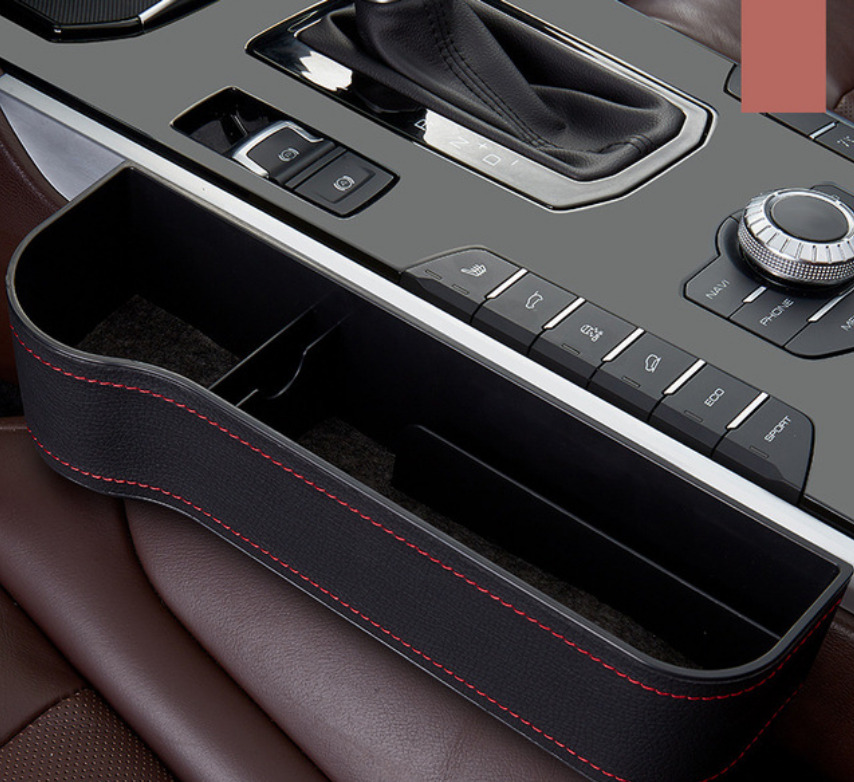 Органайзер карман между сиденьем автомобиля сторона водителя (экокожа красная строчка)