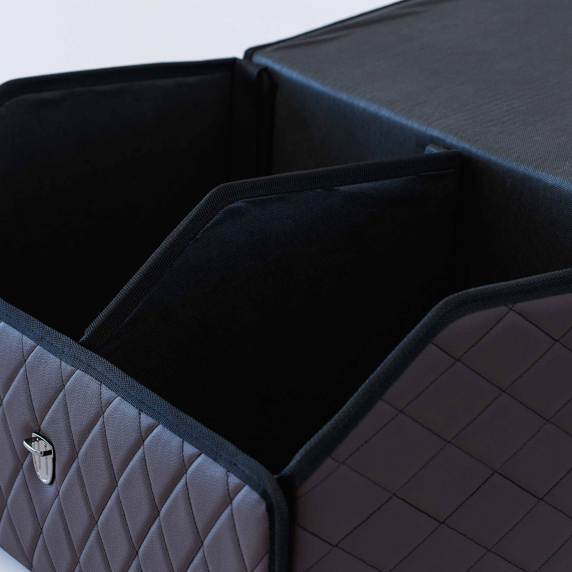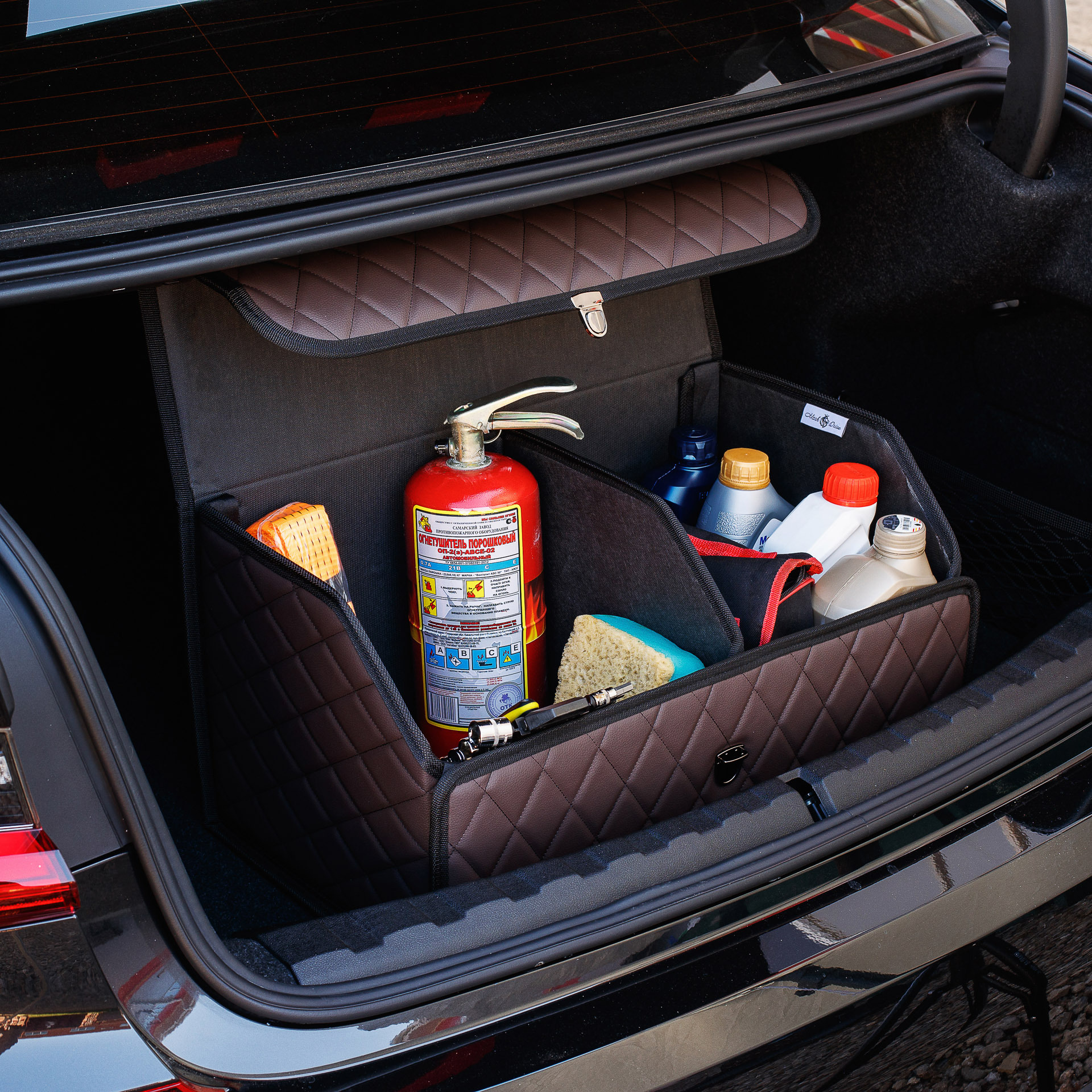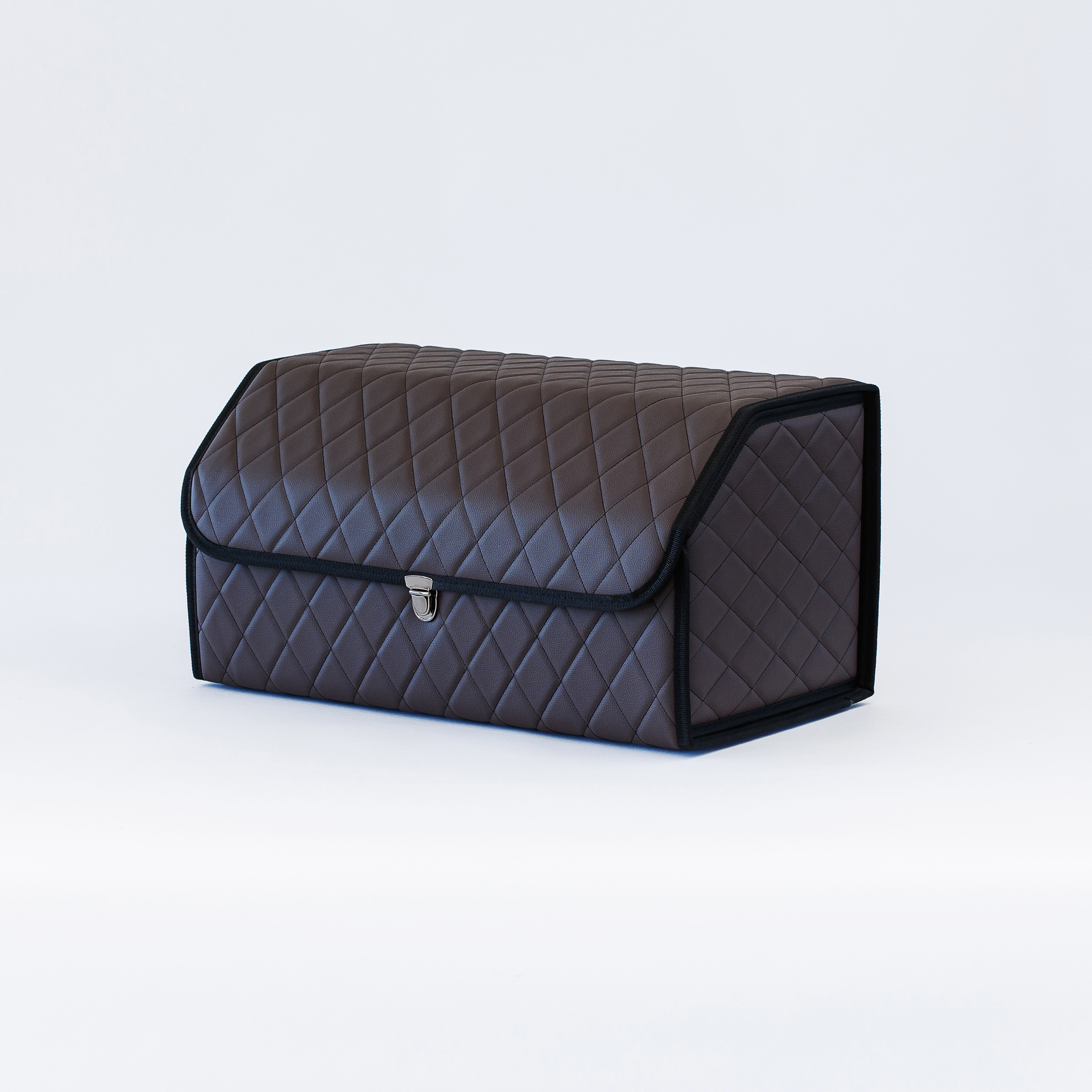 Саквояж (сумка, органайзер) в багажник из экокожи 55 см Коричневый с чёрной строчкой и чёрным кантом