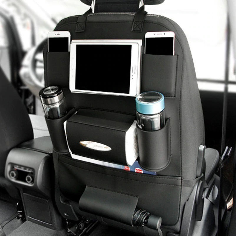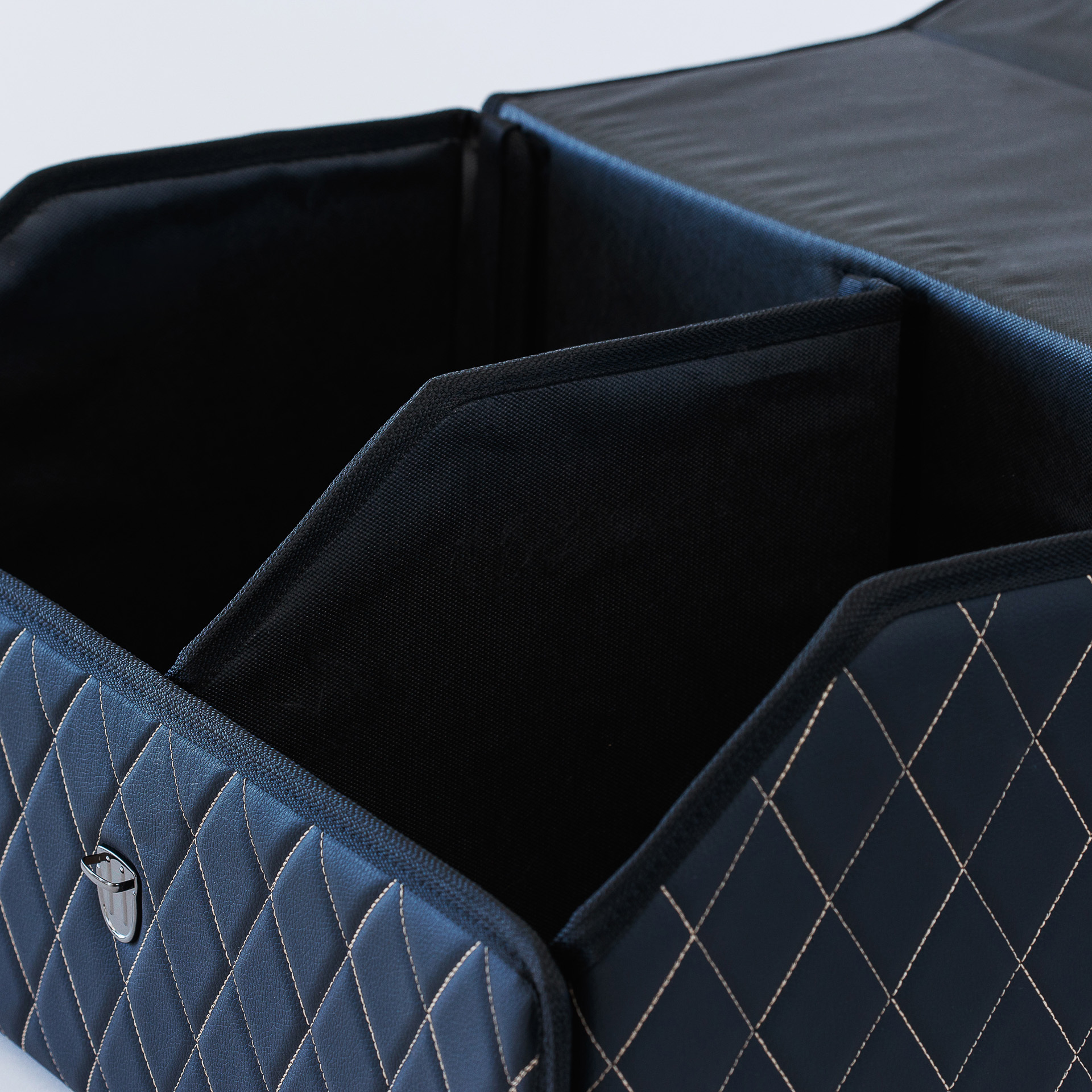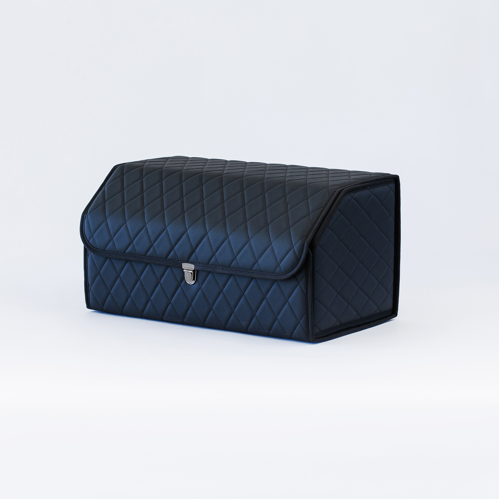 Саквояж (сумка, органайзер) в багажник из экокожи 55 см Чёрный с чёрной строчкой и чёрным кантом