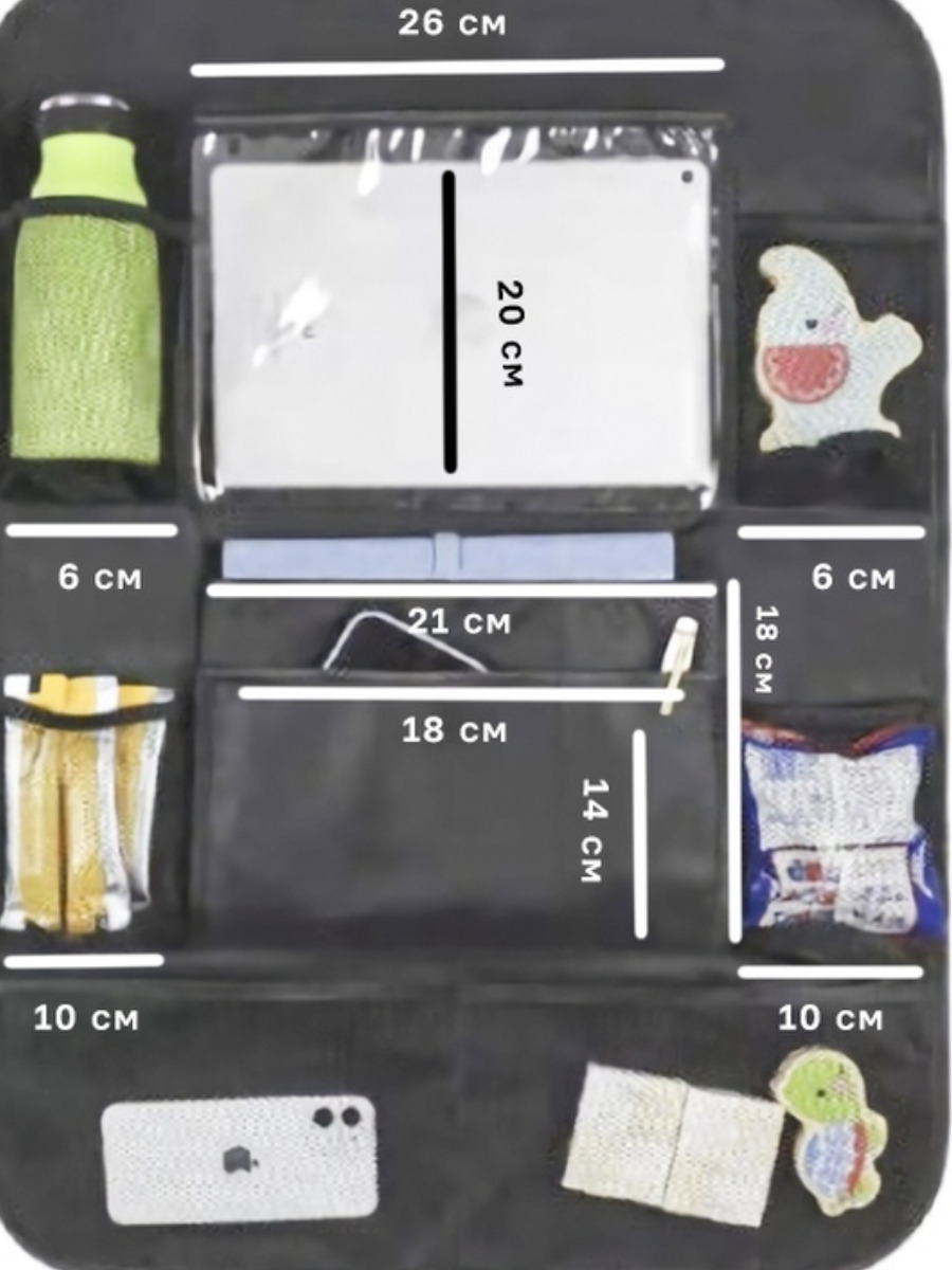 Сетка - карман двойной на липучках в багажник 25х40 см/органайзер в багажник авто/в машину