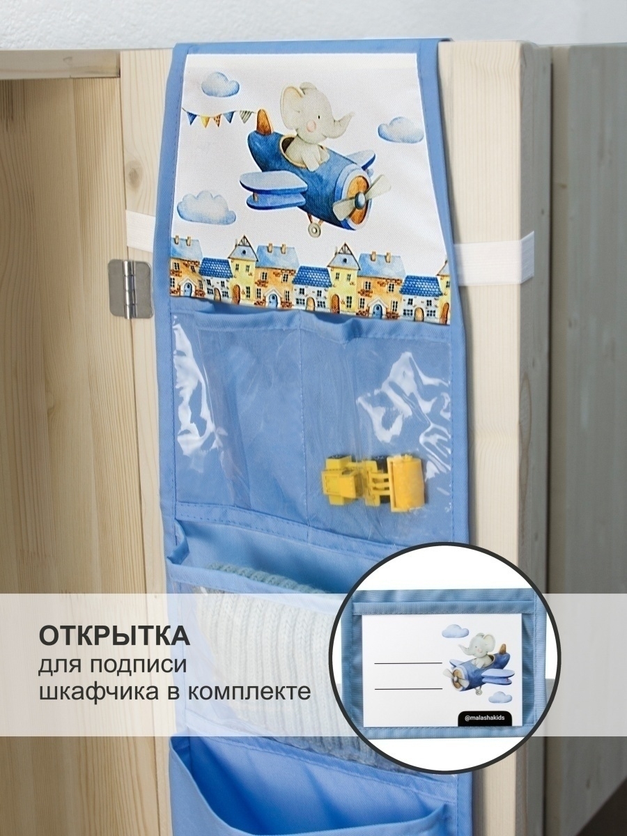 Кармашки в шкафчик для детского сада с открыткой для имени. Органайзер для хранения детских вещей.