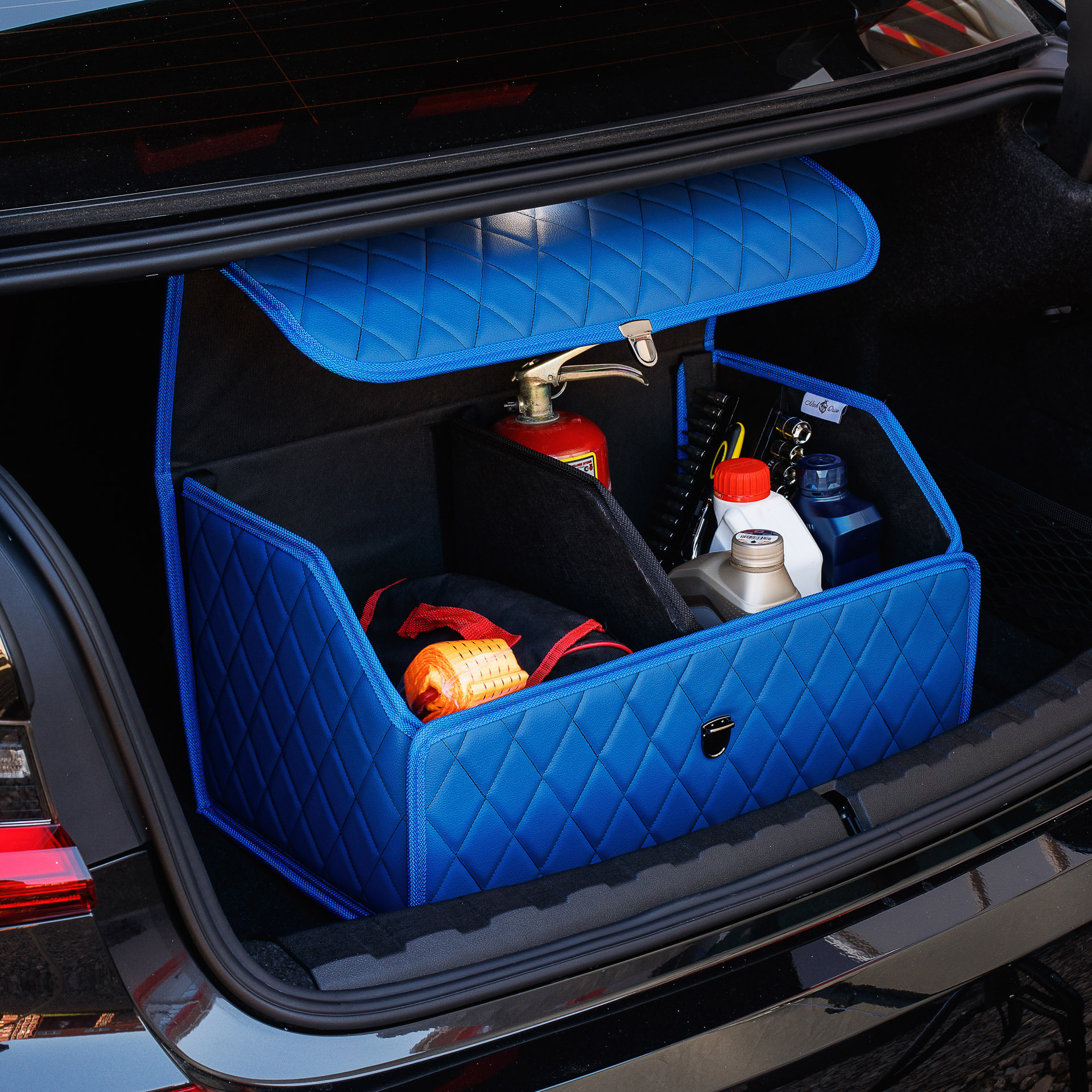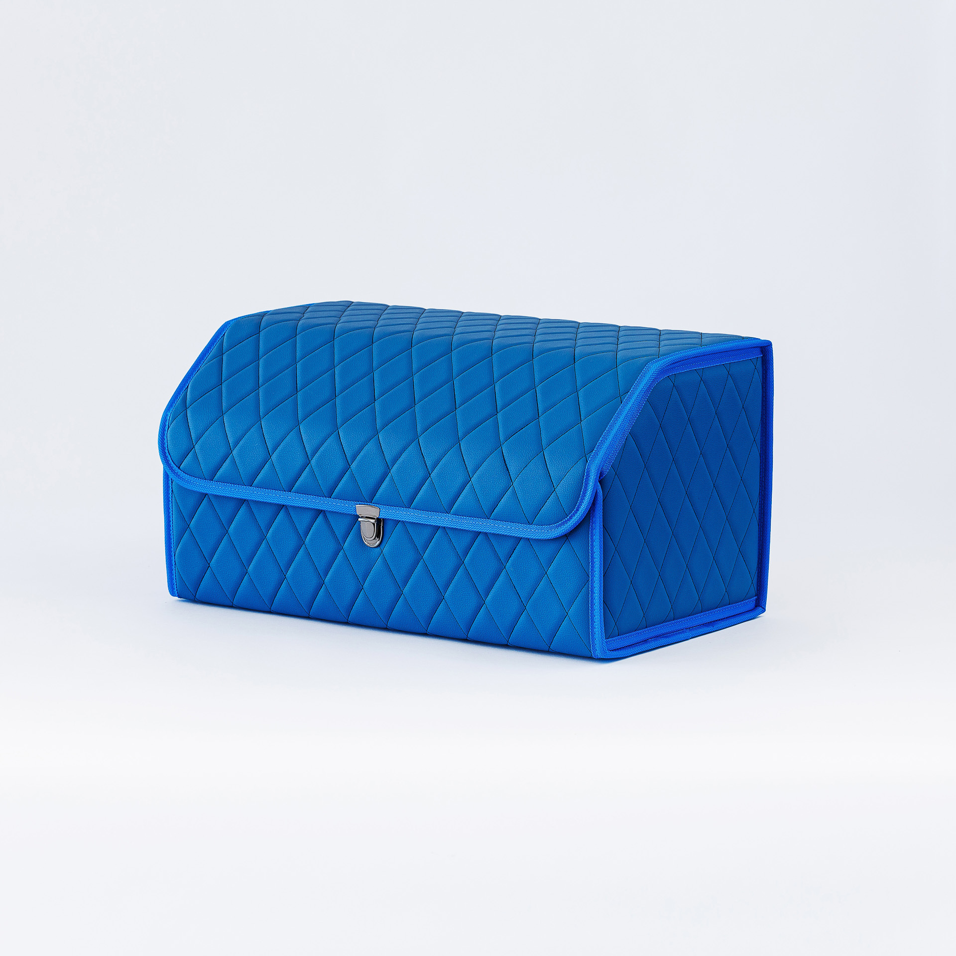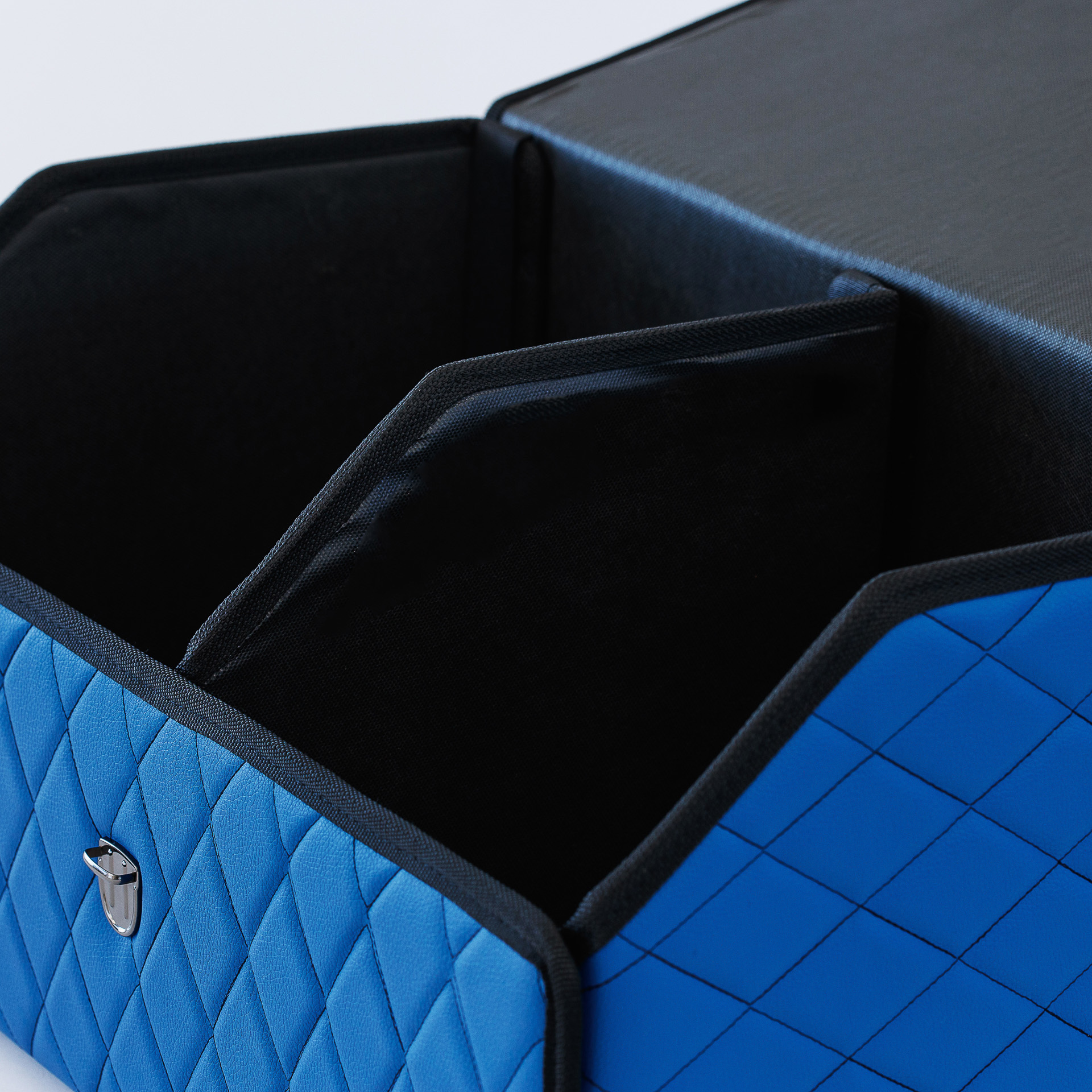 Саквояж (сумка, органайзер) в багажник из экокожи 55 см Синий с серой строчкой и синим кантом