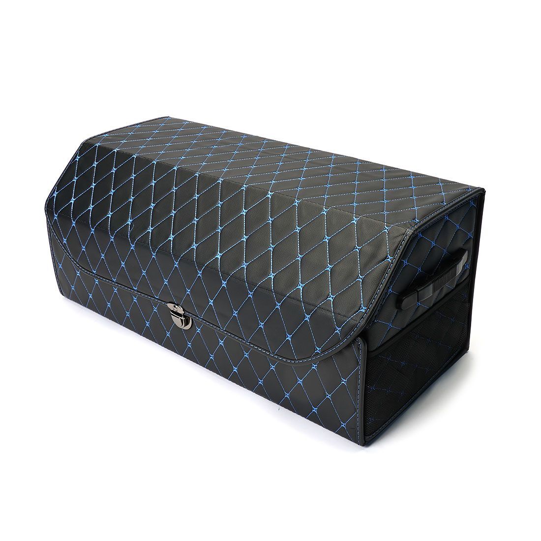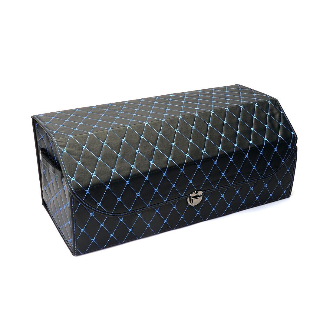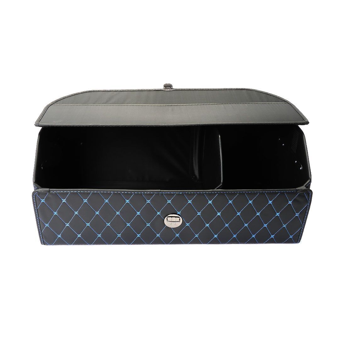 Саквояж (сумка, органайзер) в багажник из экокожи 55 см Синий с серой строчкой и синим кантом