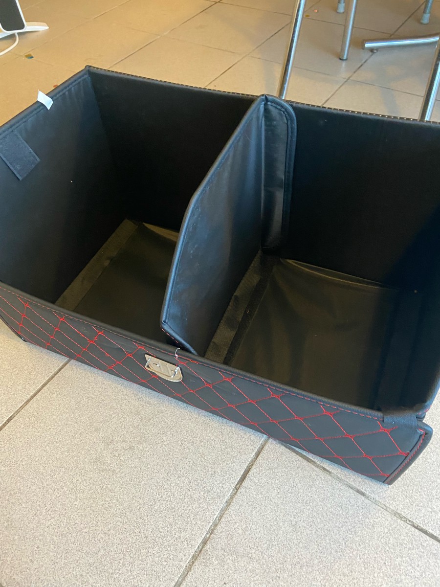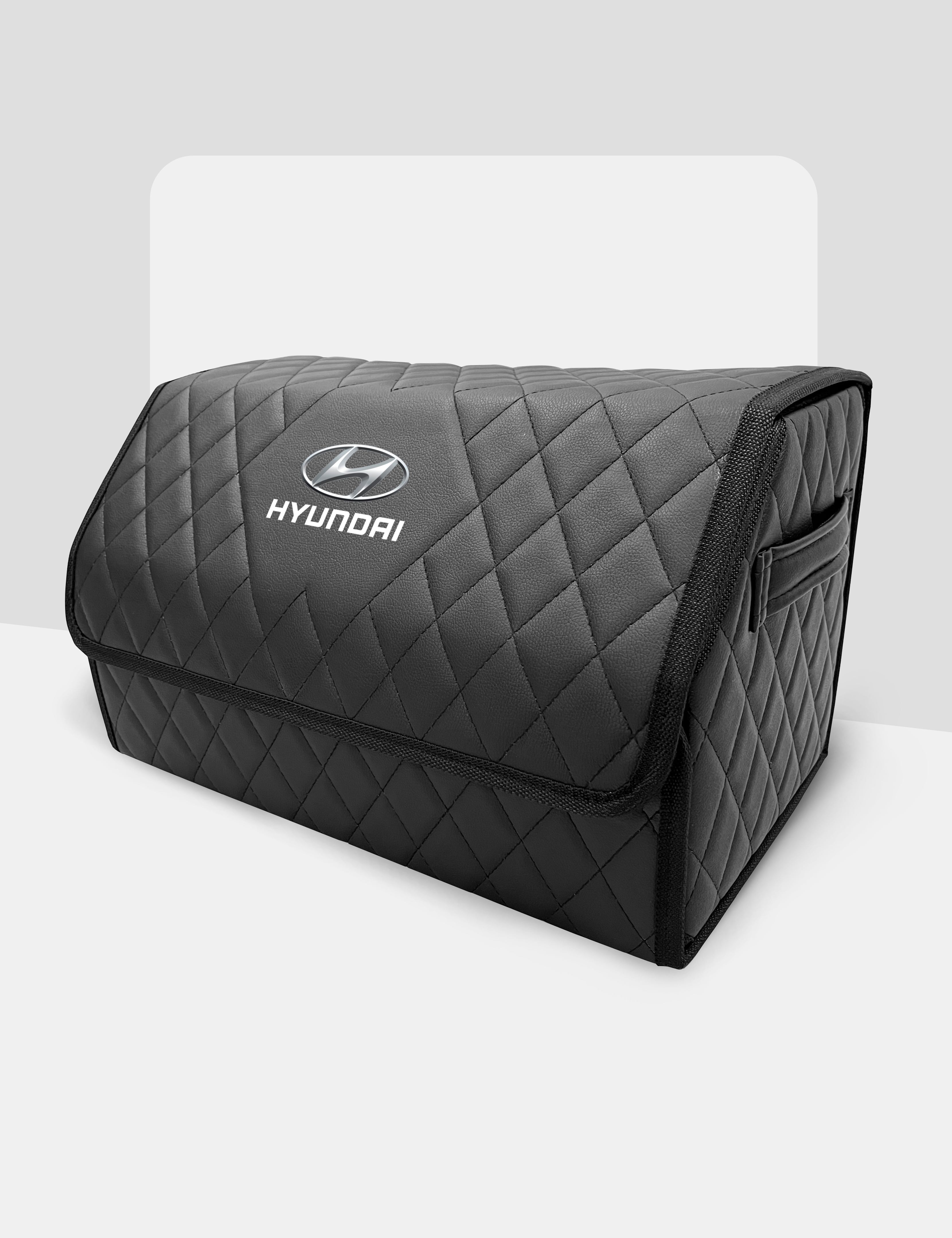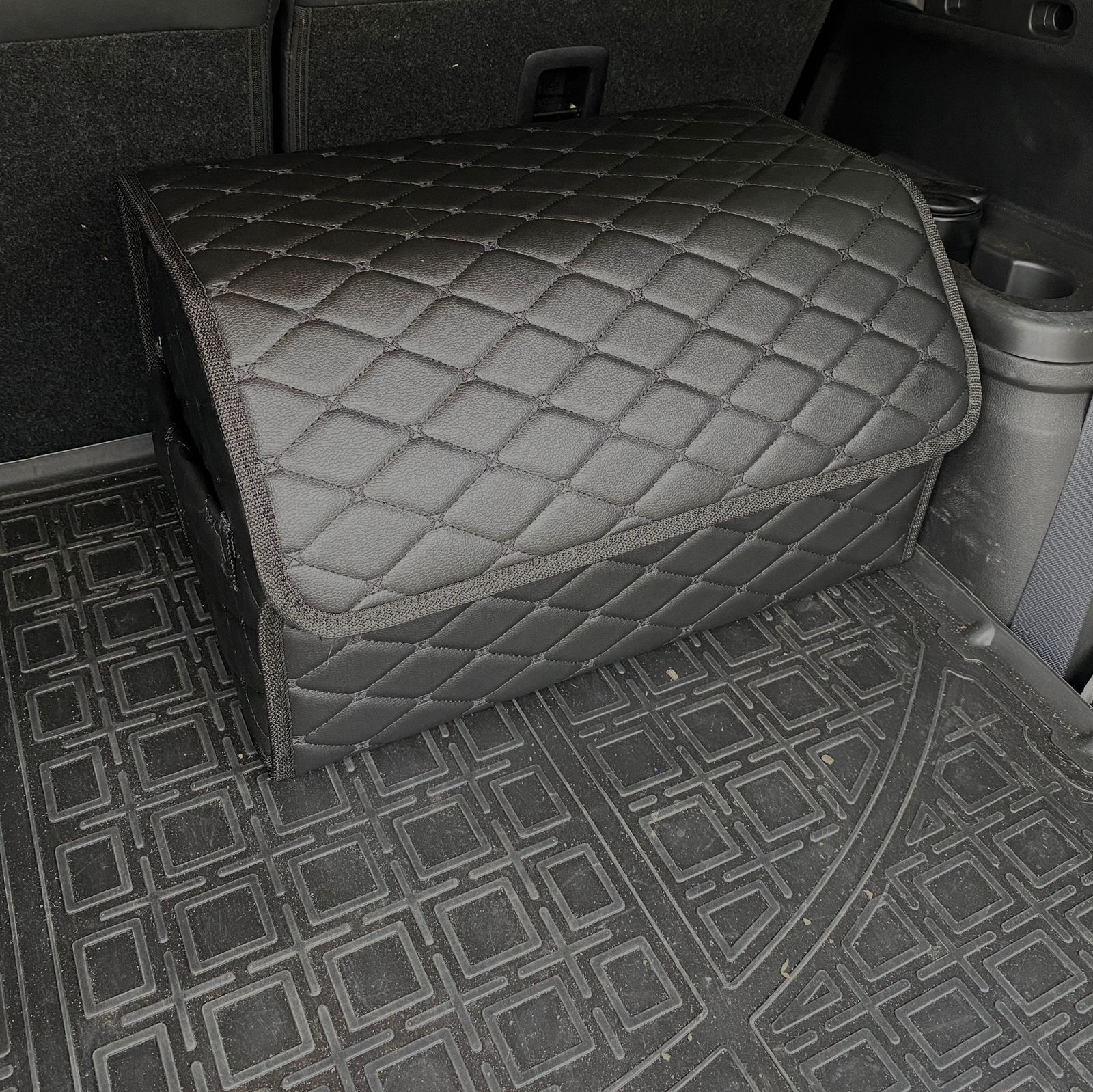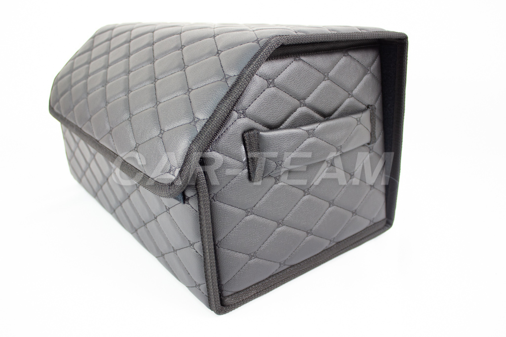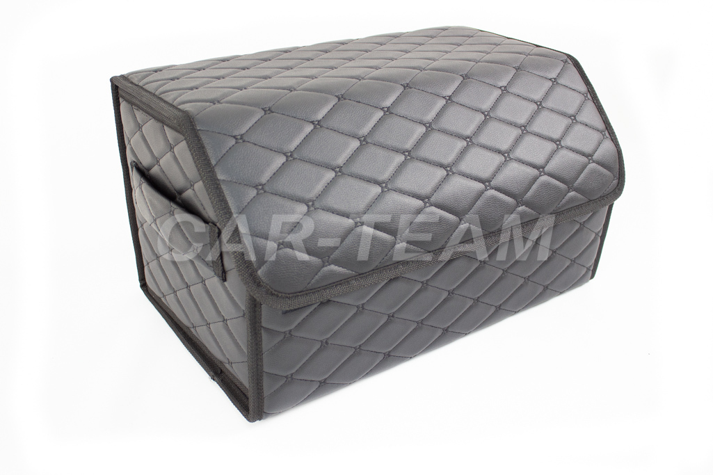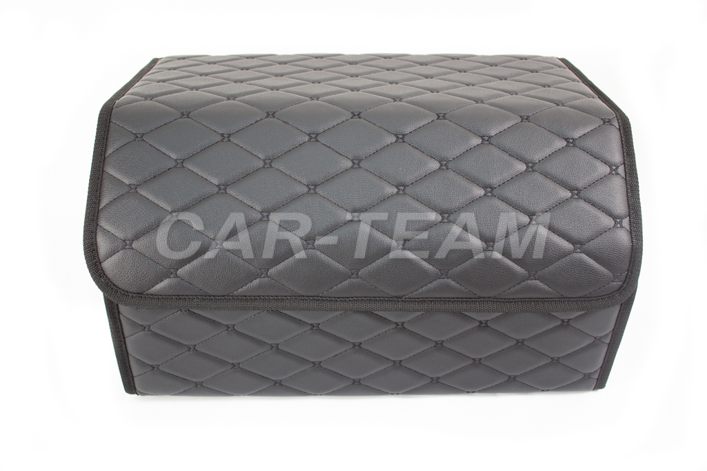 Саквояж (органайзер) в багажник из экокожи (50x30x30см), черные ромбики