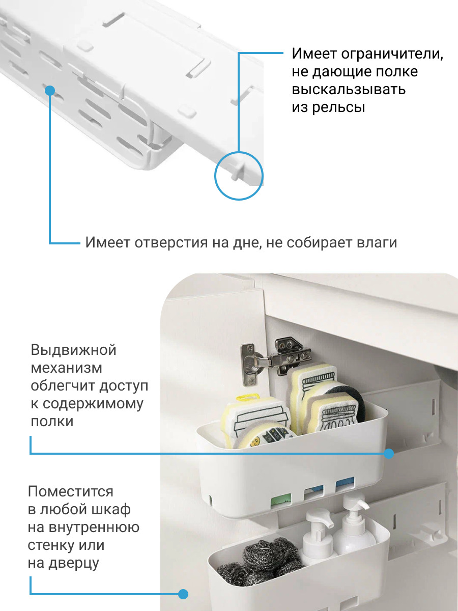 Настенный выдвижной контейнер для хранения под раковиной 28x11см, полка органайзер на кухню