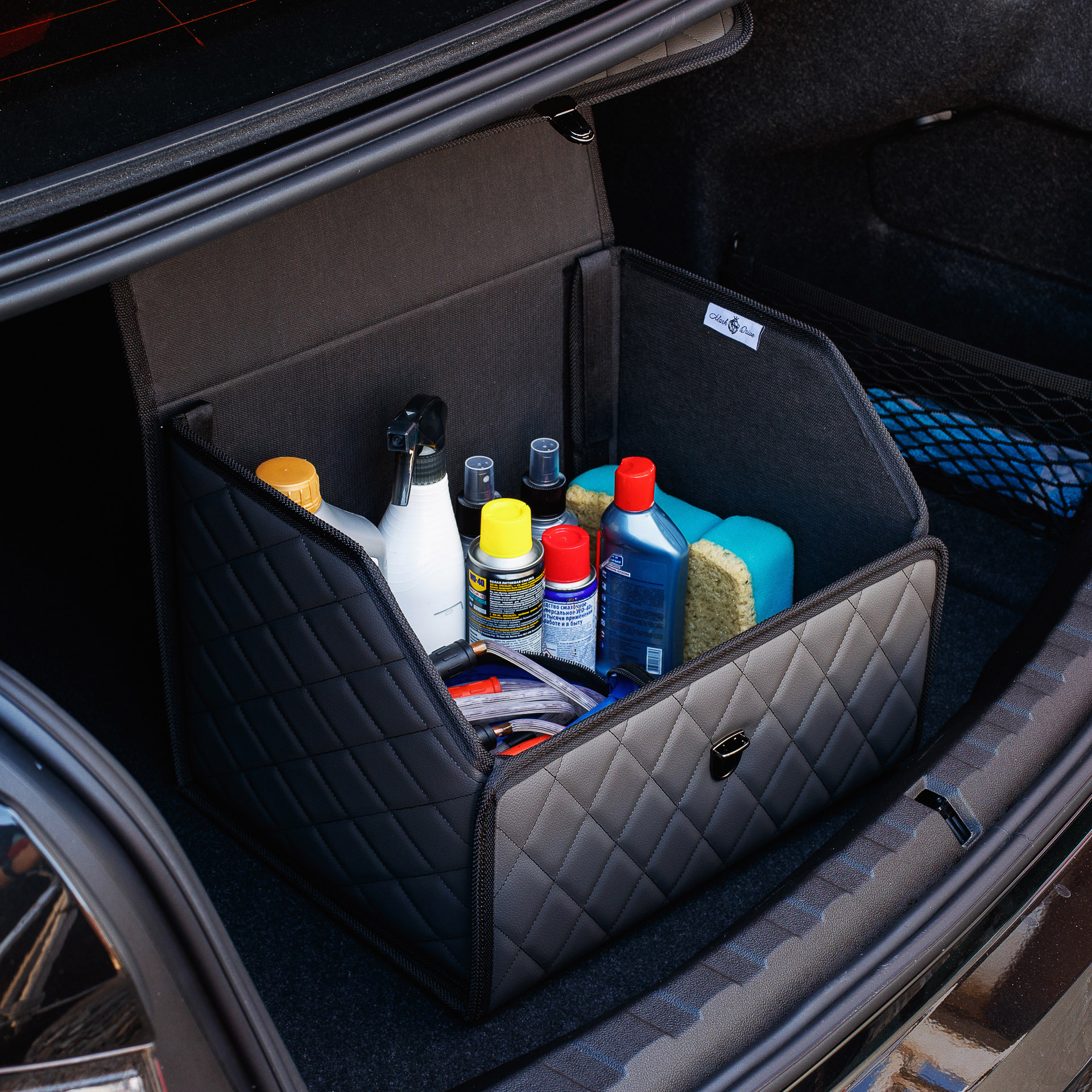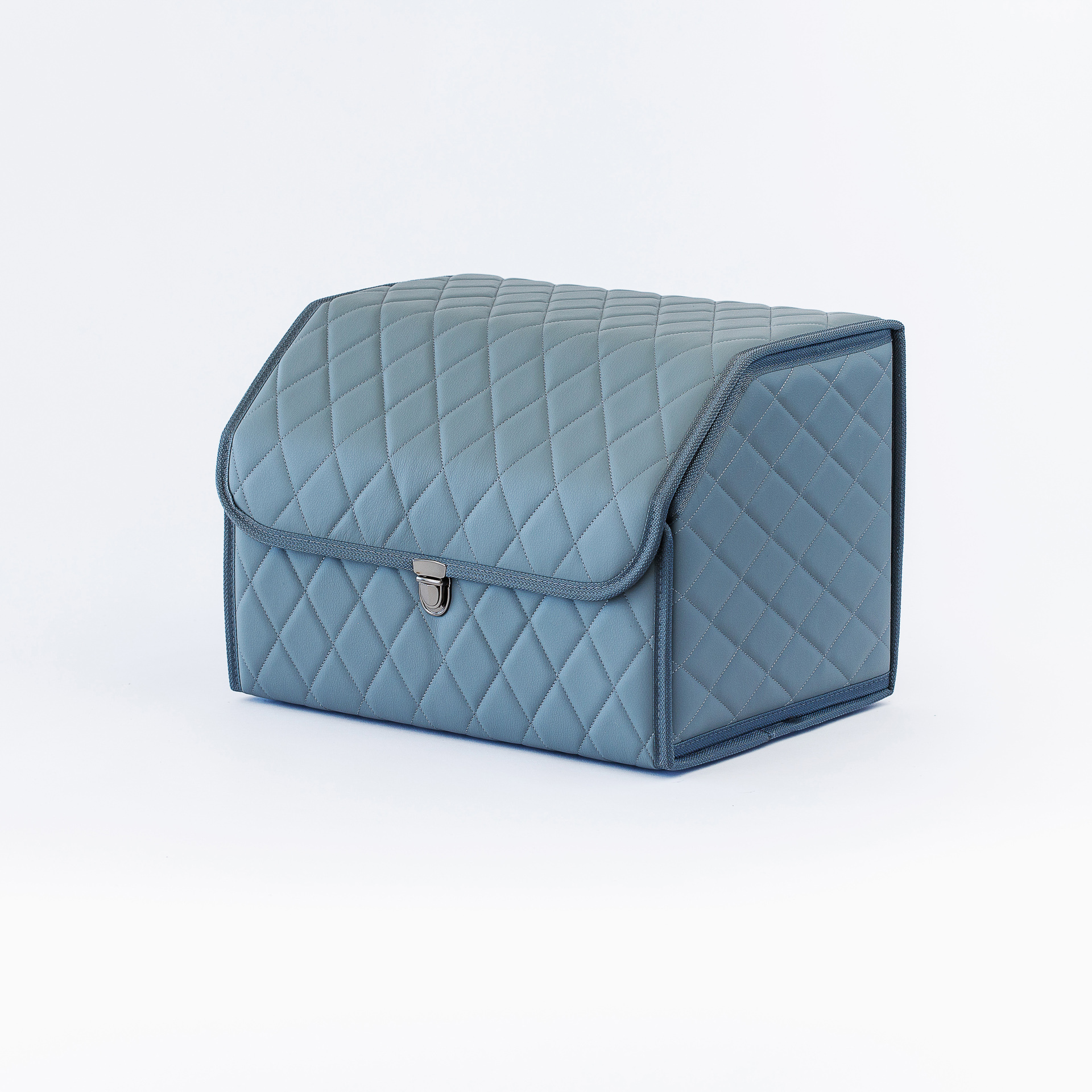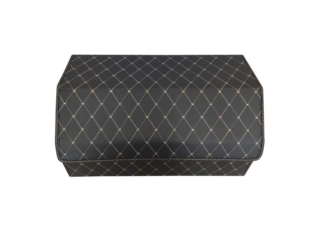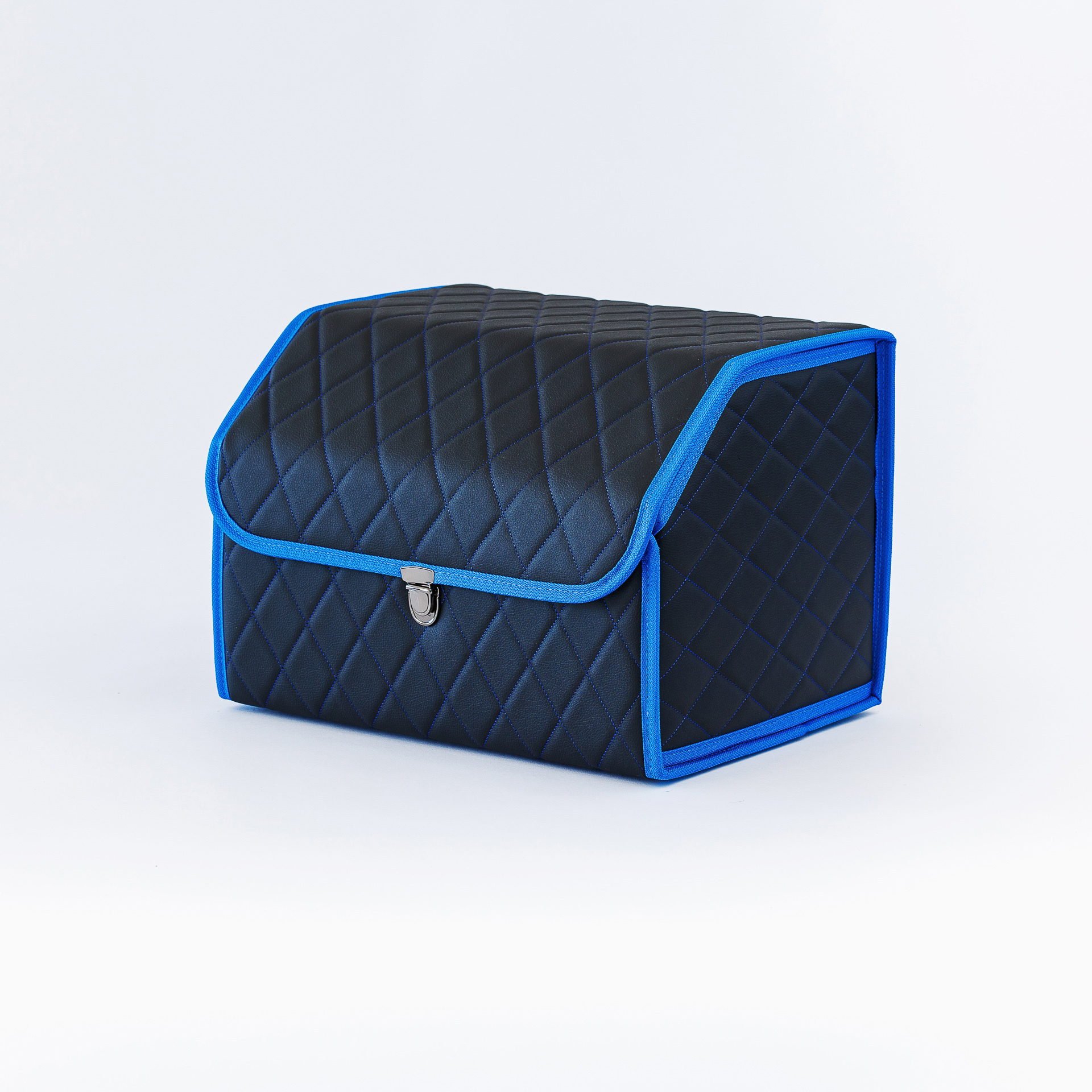 Саквояж (сумка, органайзер) в багажник из экокожи 40 см Чёрный с синей строчкой и синим кантом