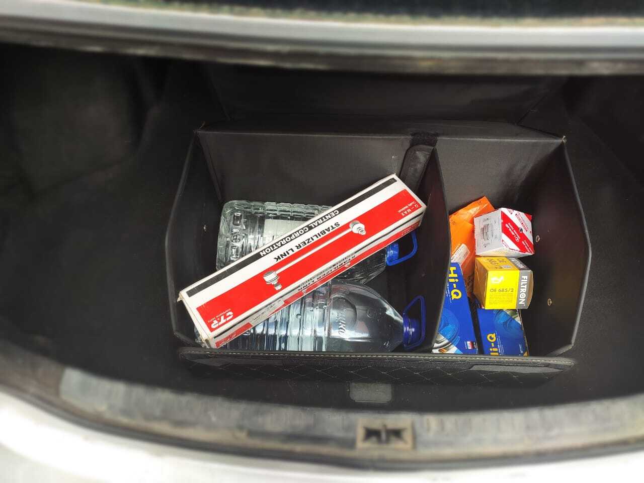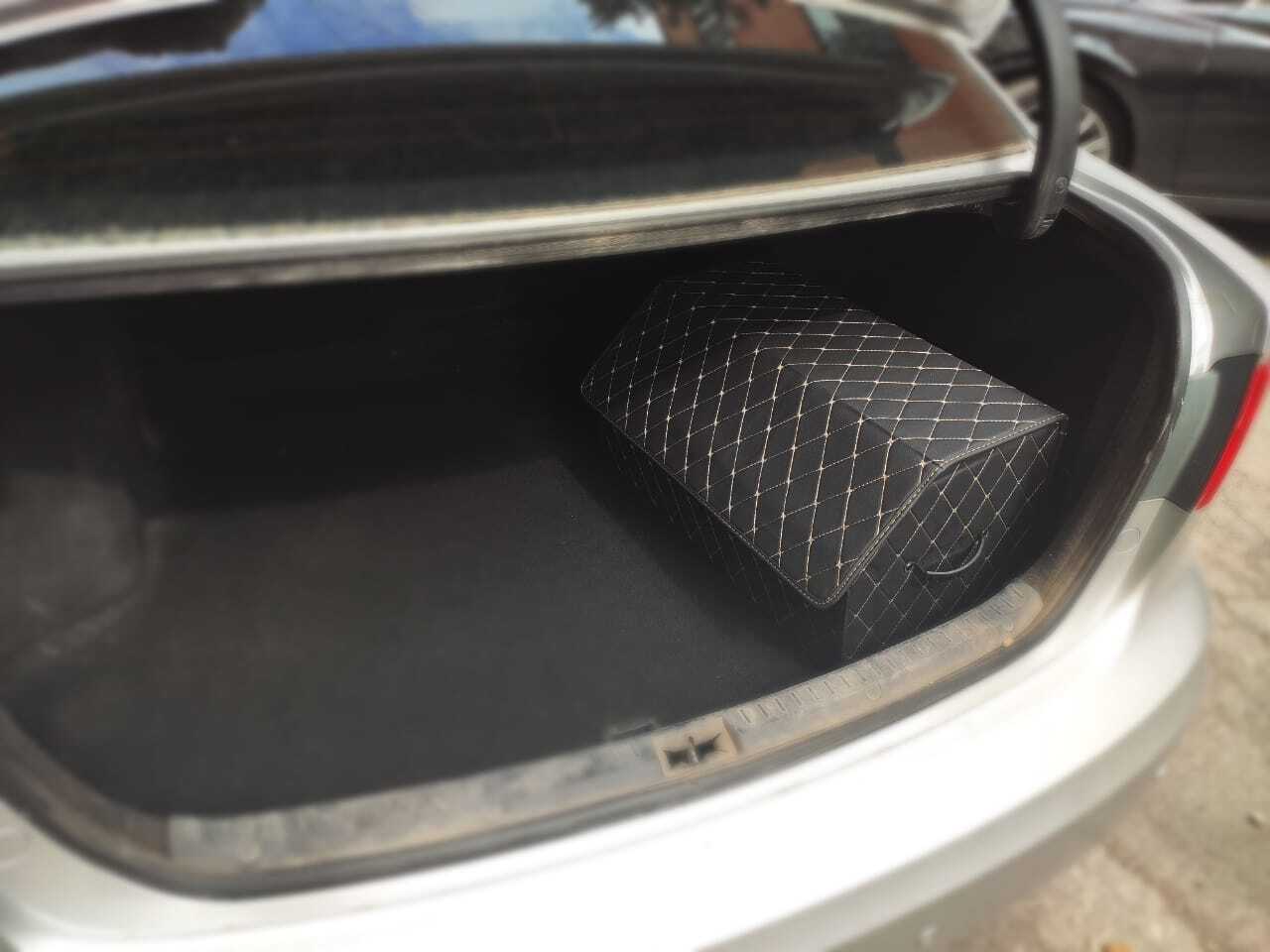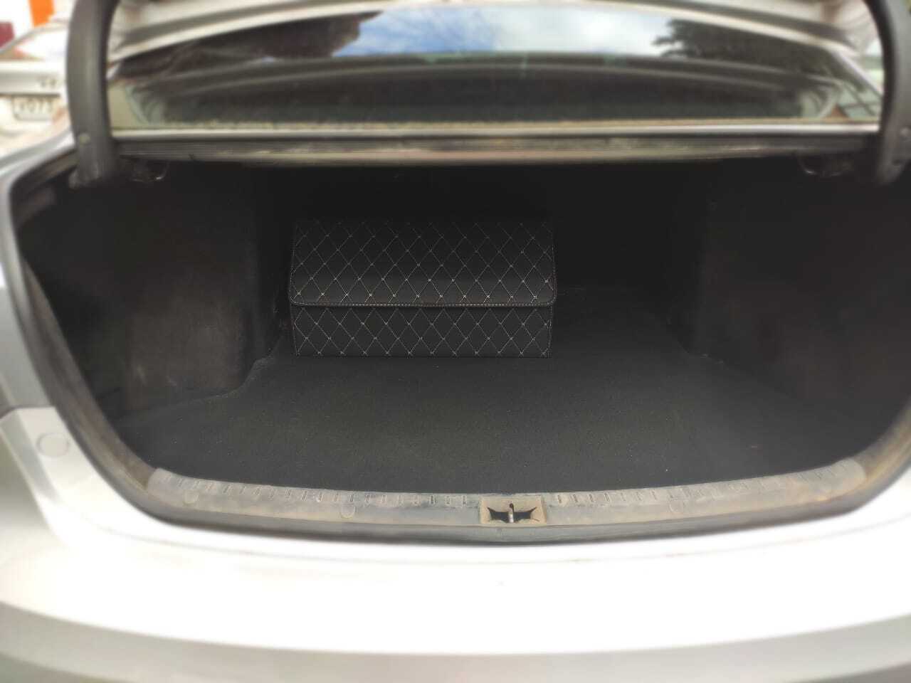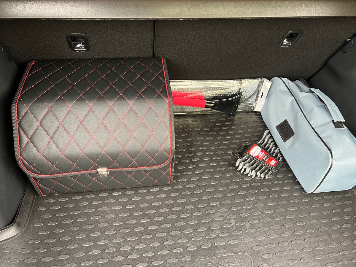 Саквояж (сумка, органайзер) в багажник из экокожи 40 см Чёрный с синей строчкой и синим кантом