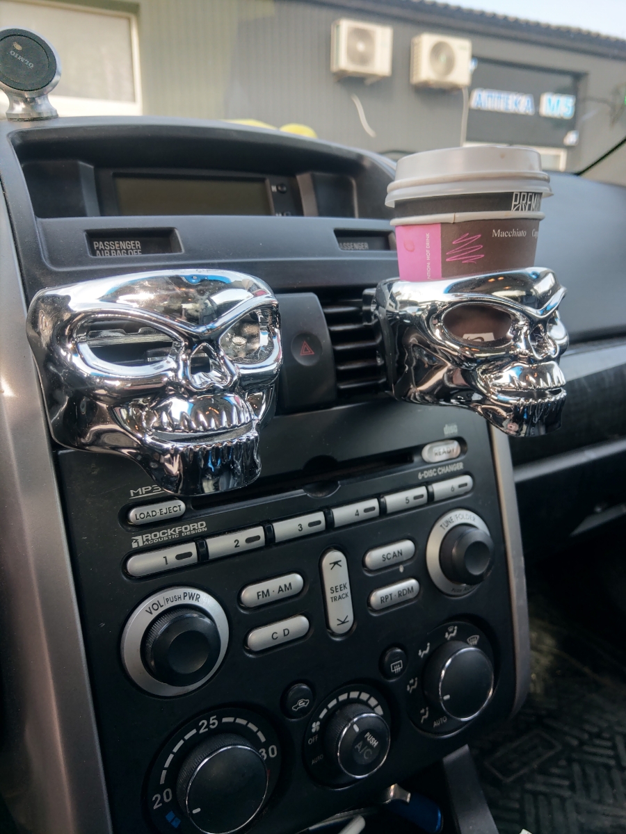 Подстаканник в дефлектор, автомобильный, "череп", хром