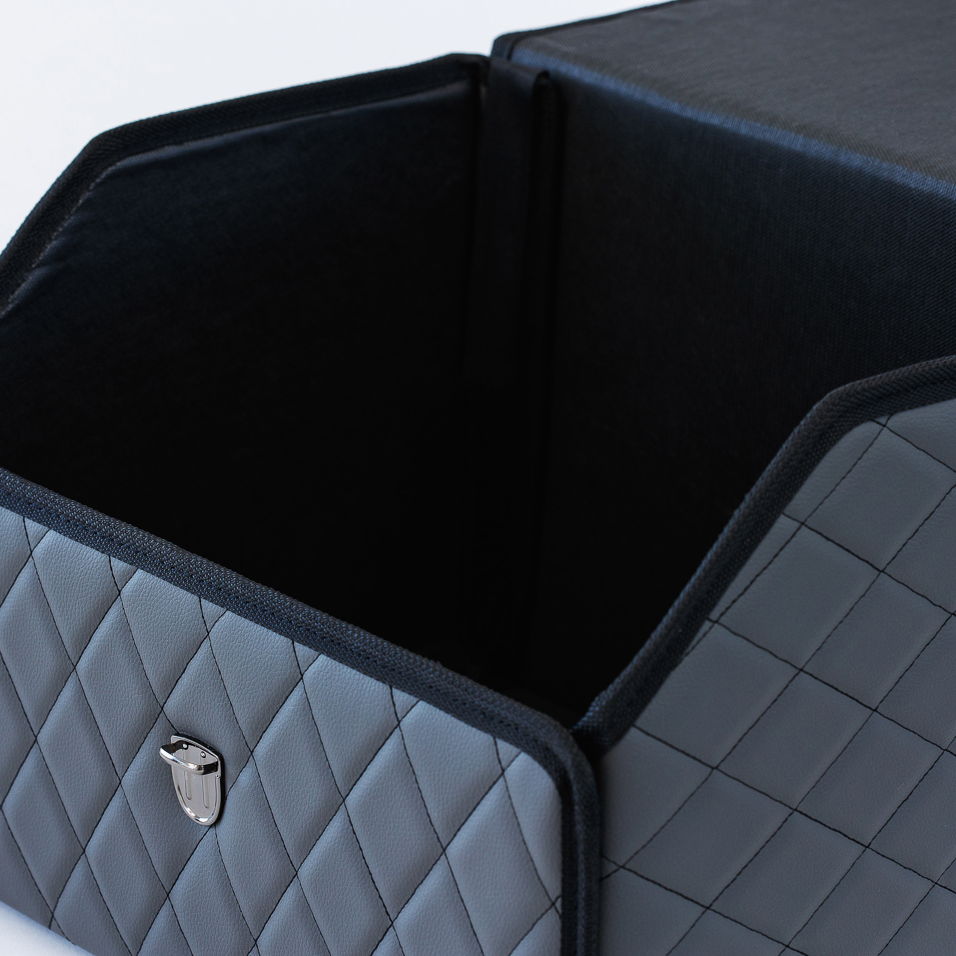 Саквояж (сумка, органайзер) в багажник из экокожи 40 см Серый с серой строчкой и серым кантом