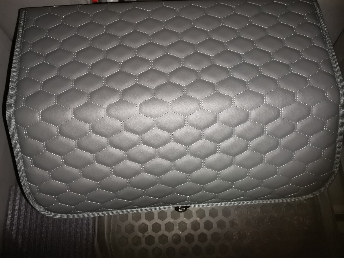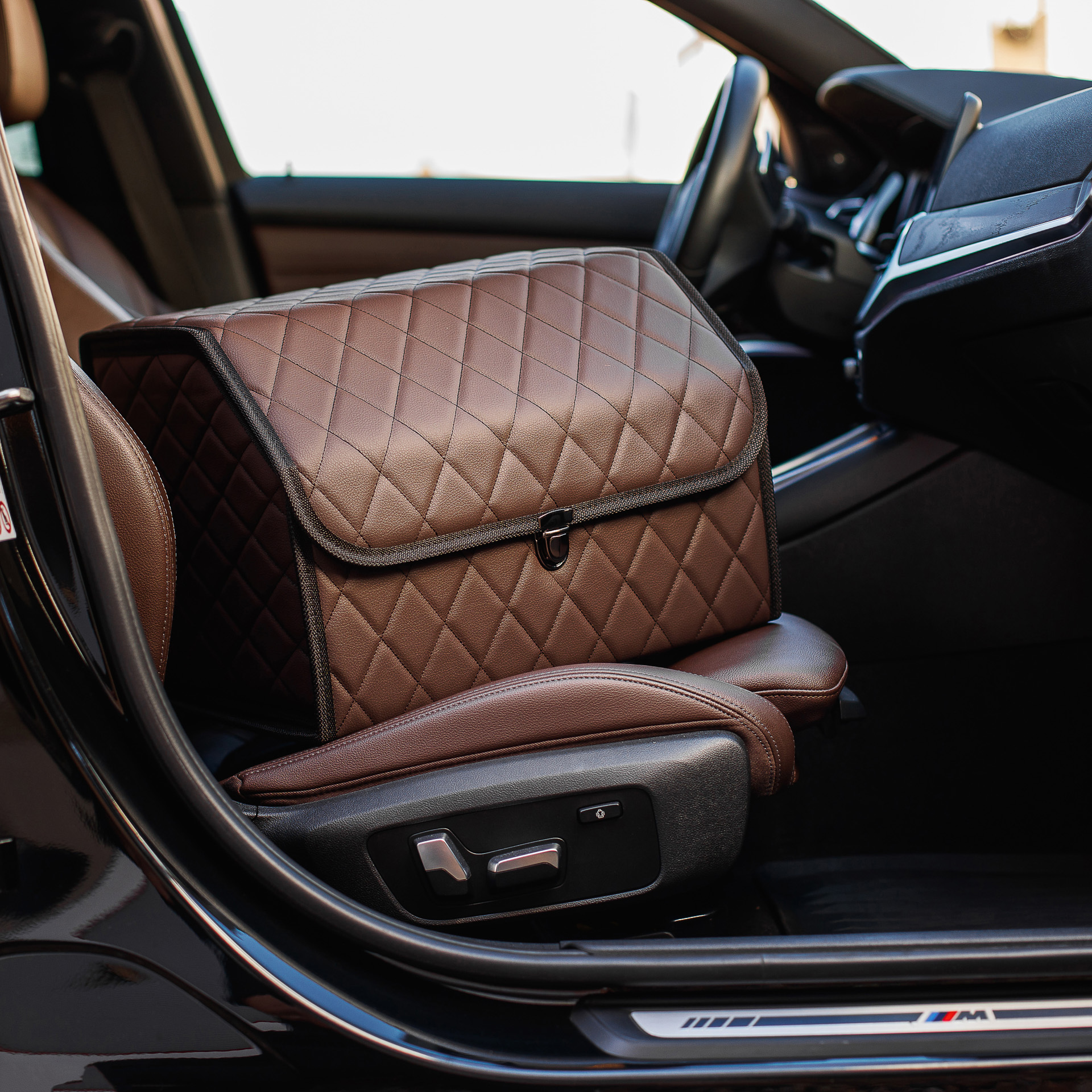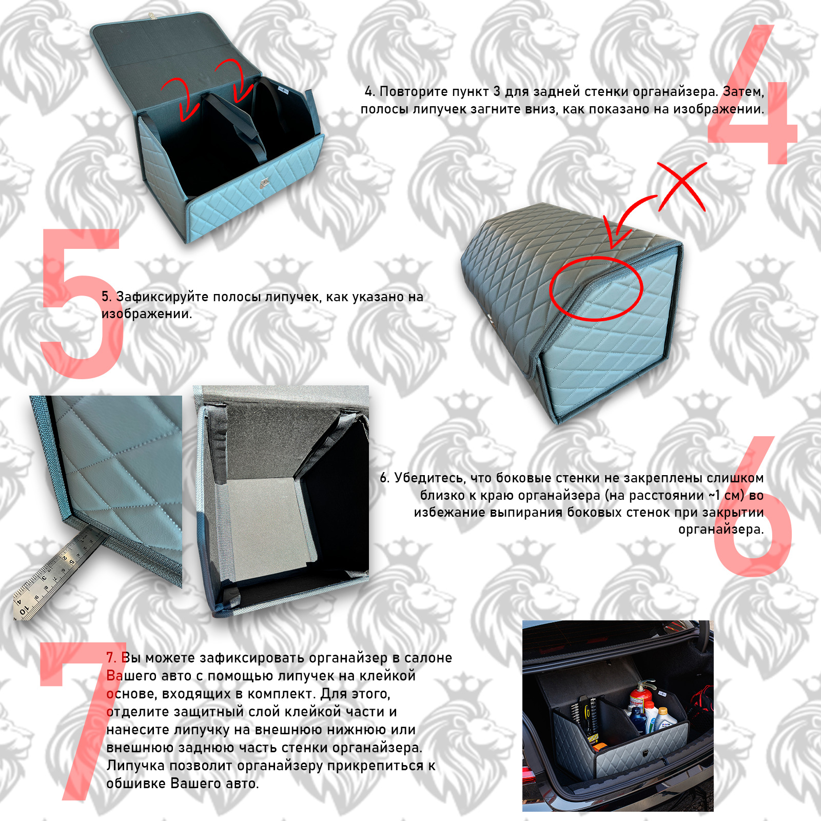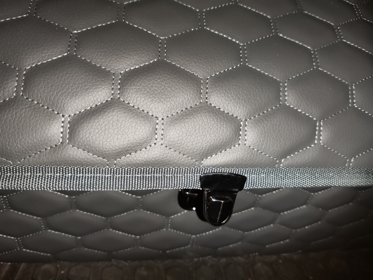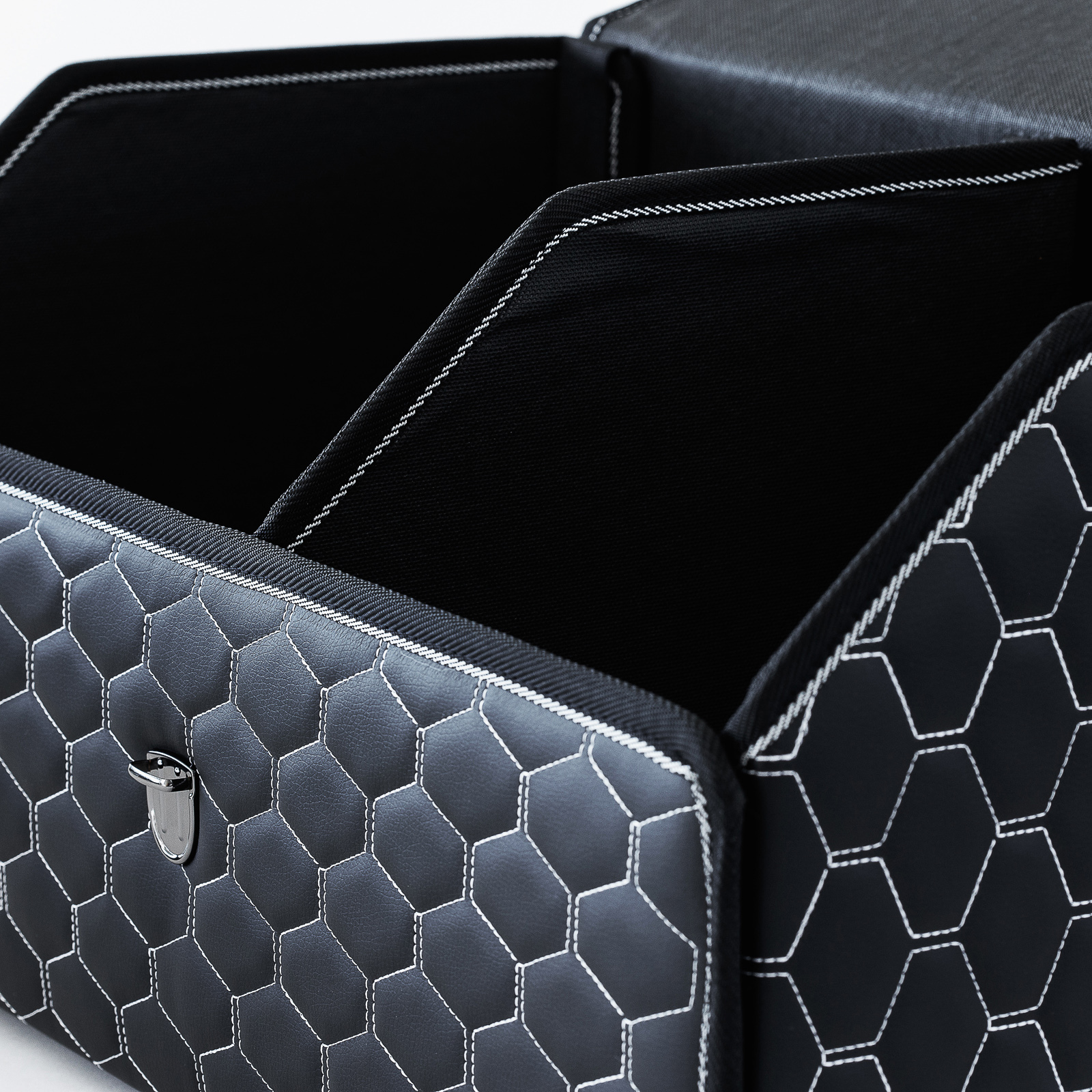 Саквояж (сумка, органайзер) в багажник из экокожи 55 см Чёрный с белой строчкой и чёрным кантом