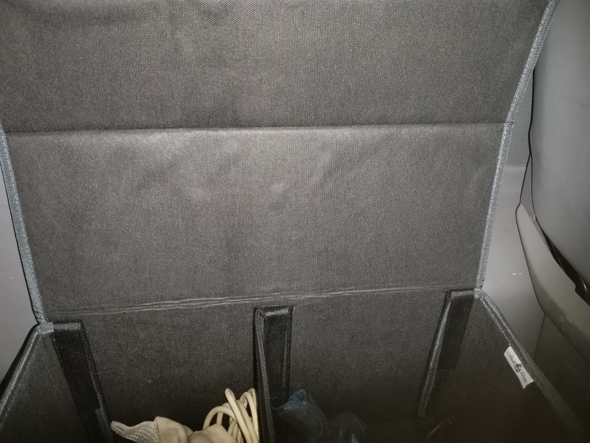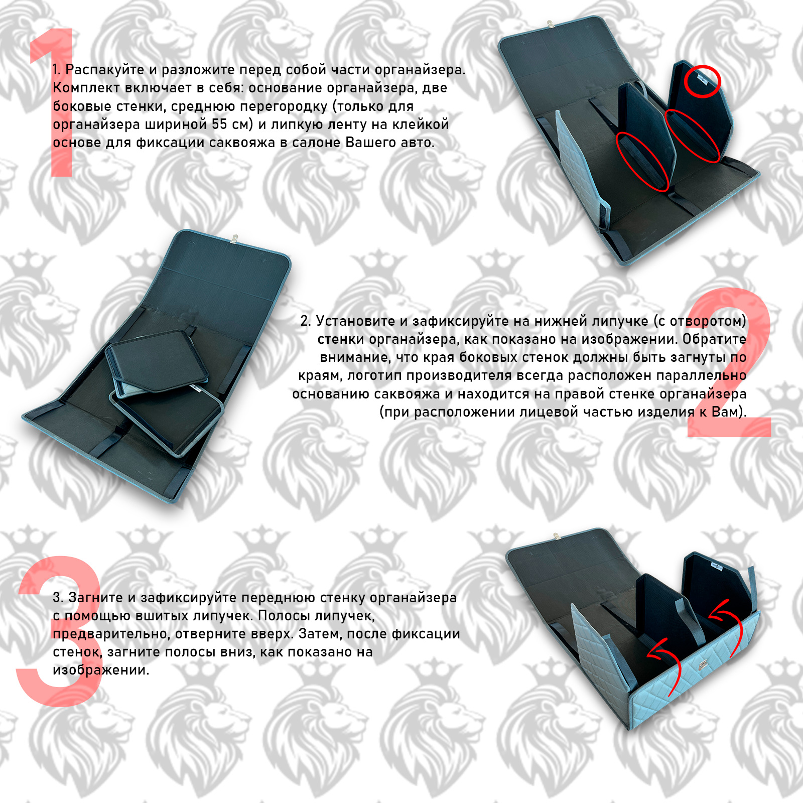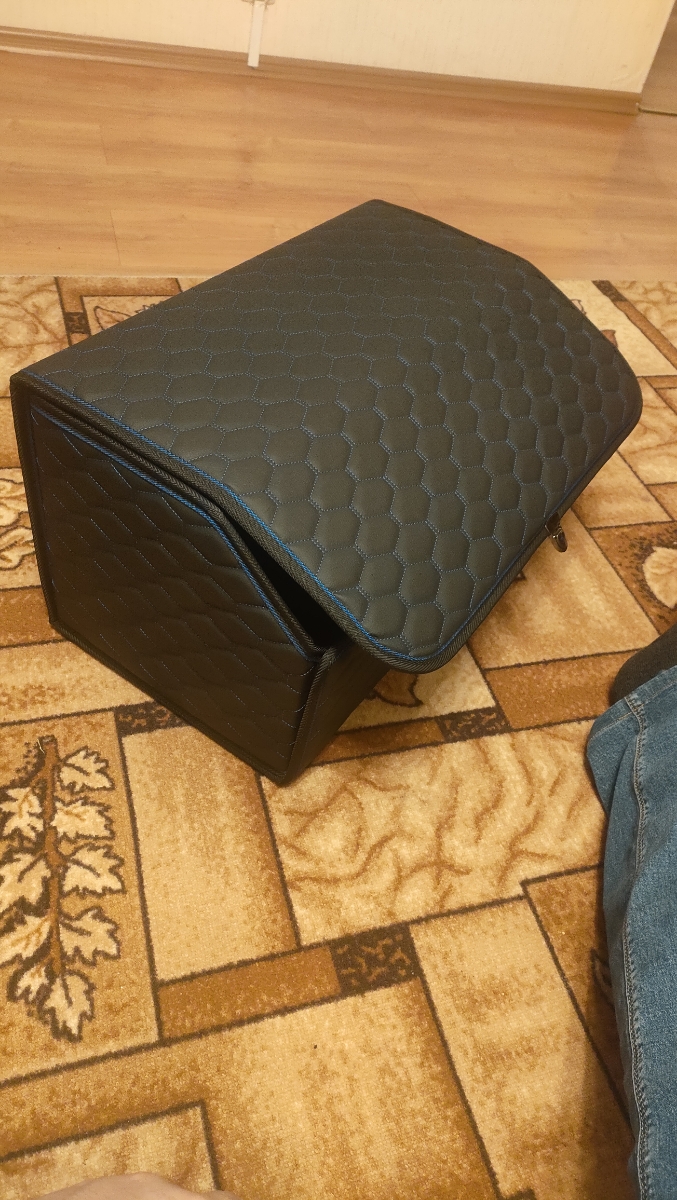 Саквояж (сумка, органайзер) в багажник из экокожи 55 см Чёрный с синей строчкой и чёрным кантом