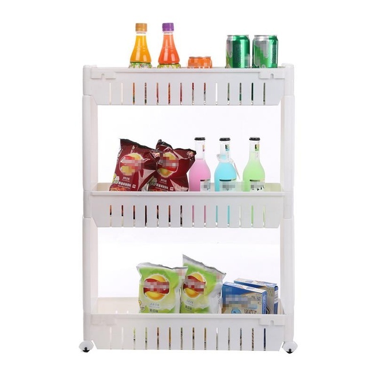 Кухонный органайзер этажерка на колёсах выдвижной напольный 3 полки 50х12х69 см Белый