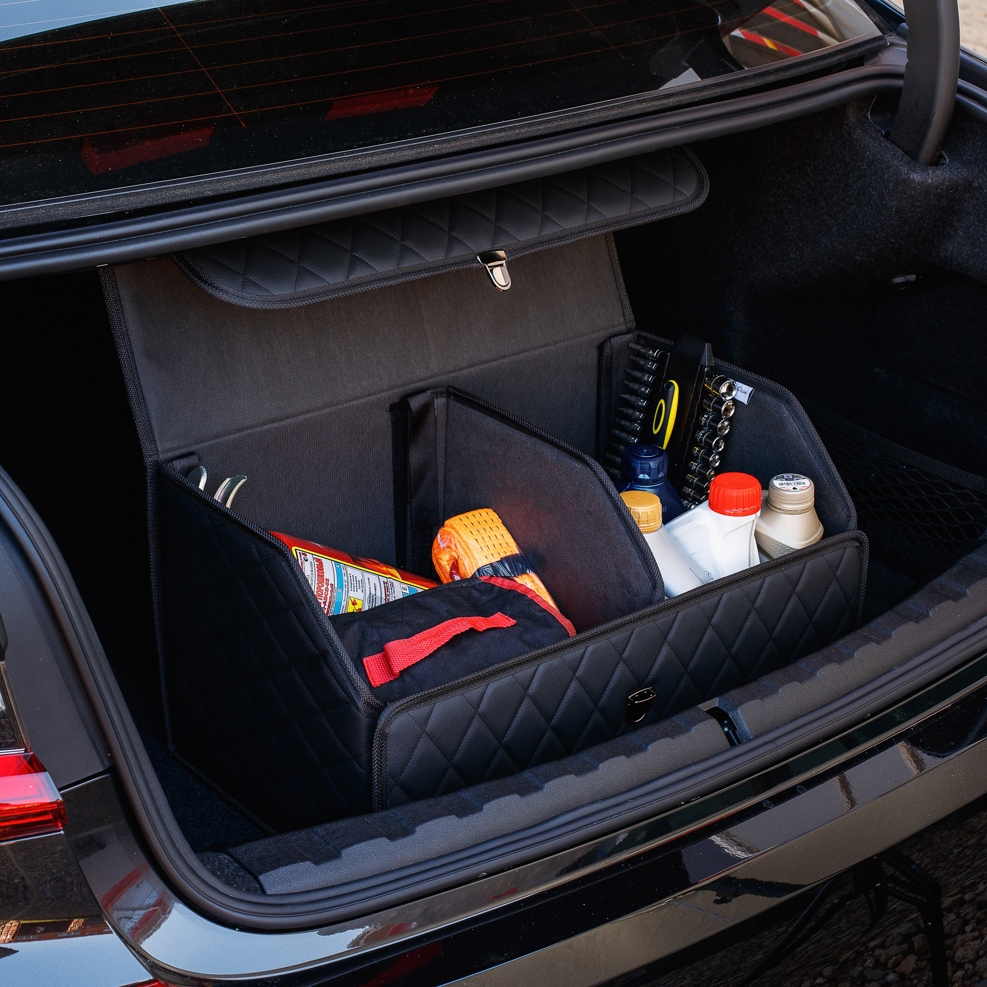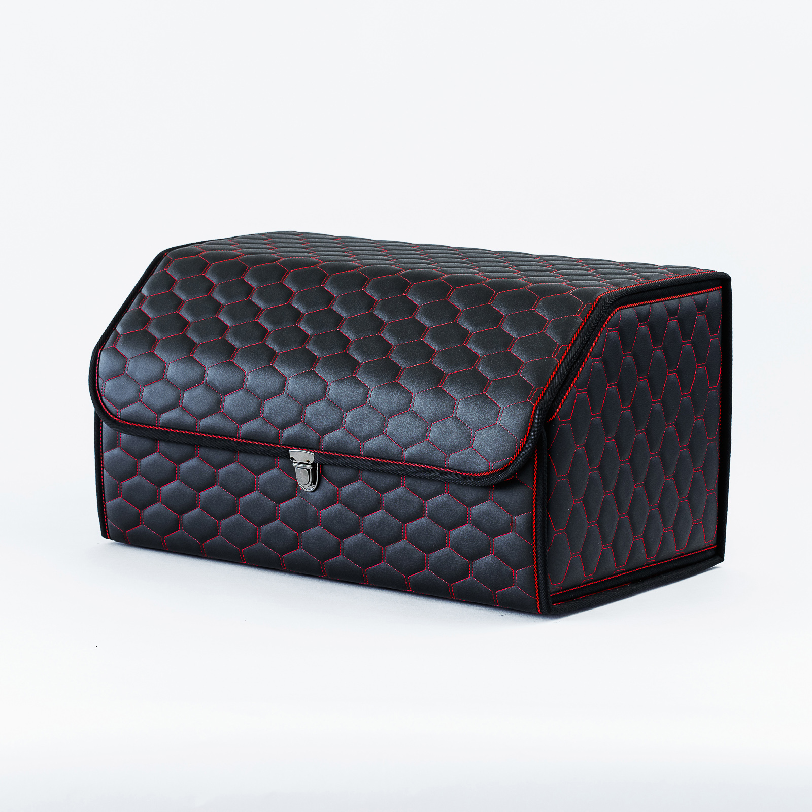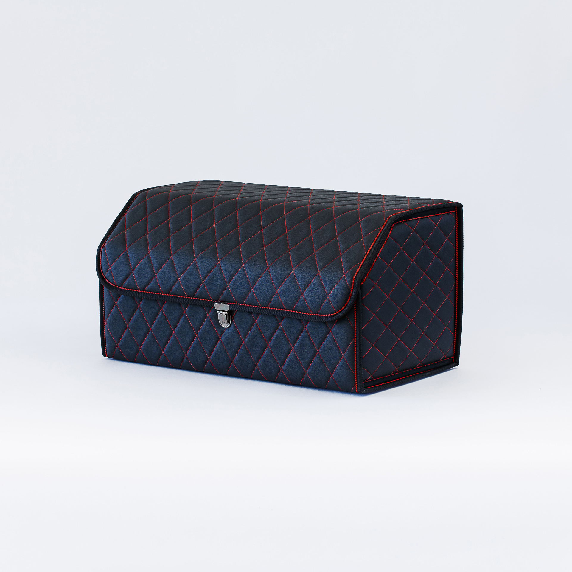 Саквояж (сумка, органайзер) в багажник из экокожи 55 см Чёрный с красной строчкой и чёрным кантом