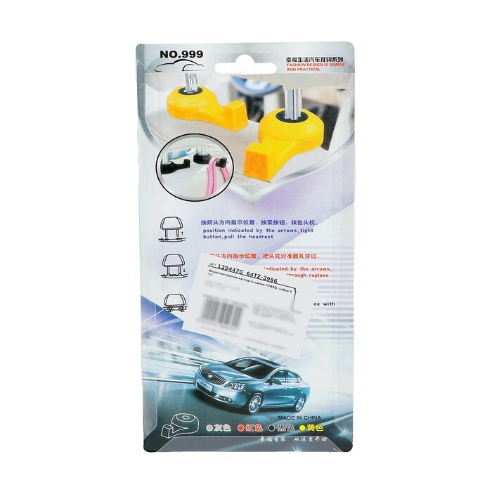 Вешалка-крючок на подголовник, набор 2 шт, чёрный
