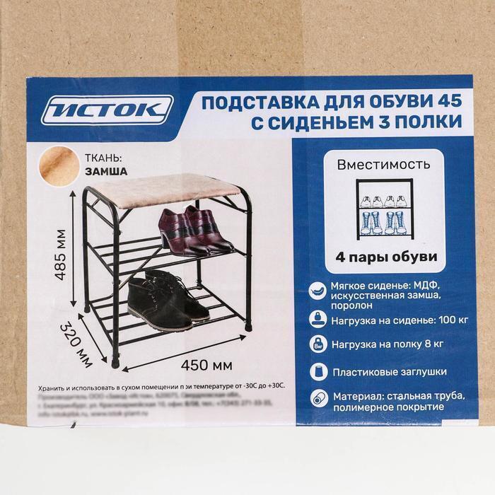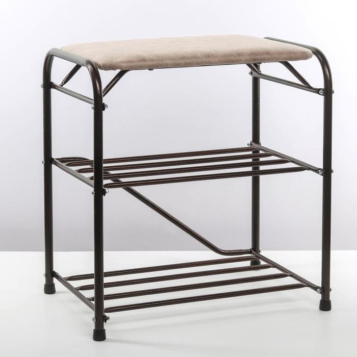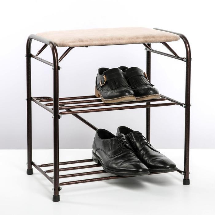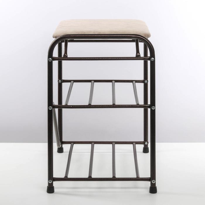 Подставка для обуви с сиденьем, 3 яруса, 45x32x48,5 см, замша, цвет медный антик