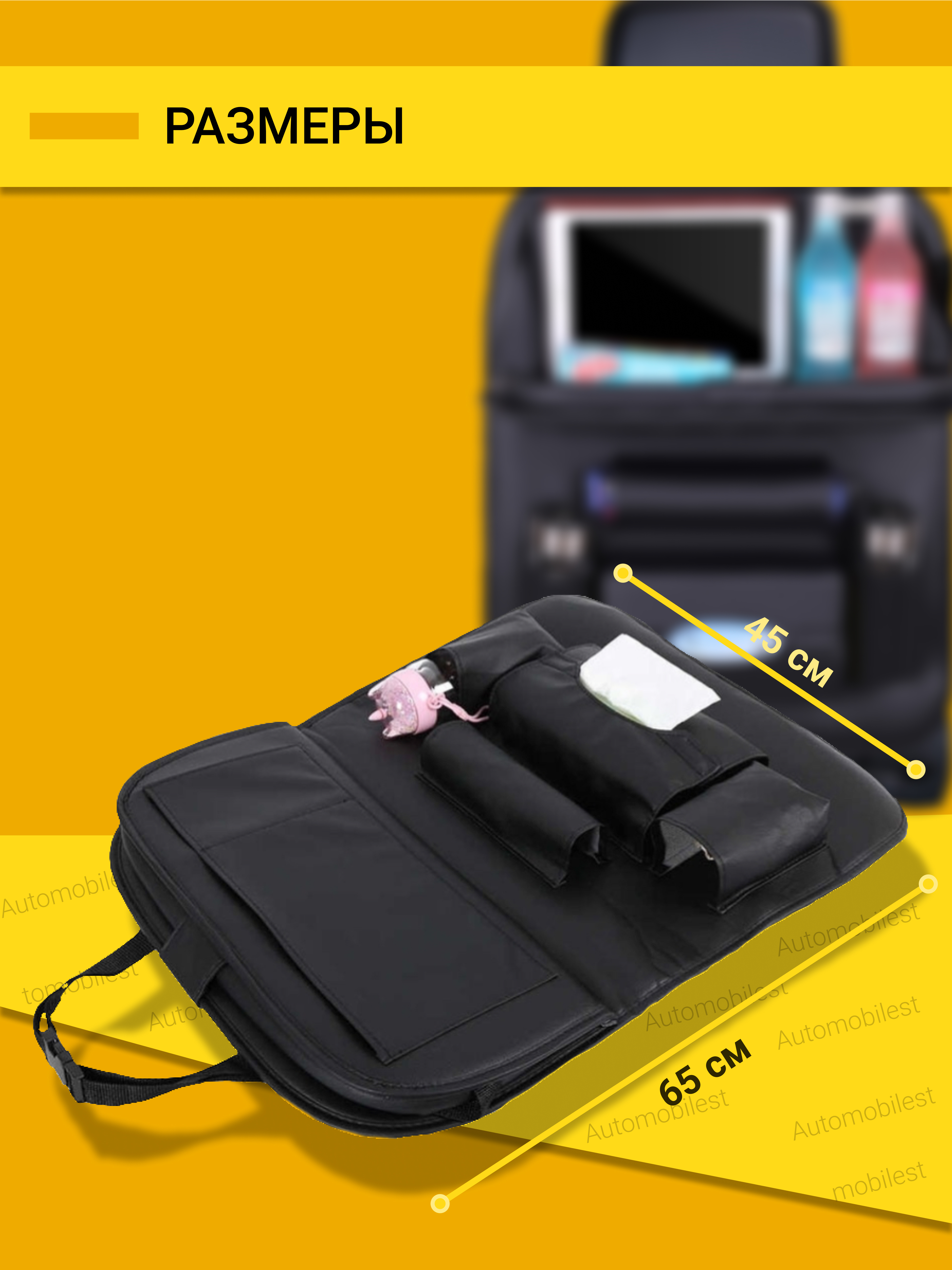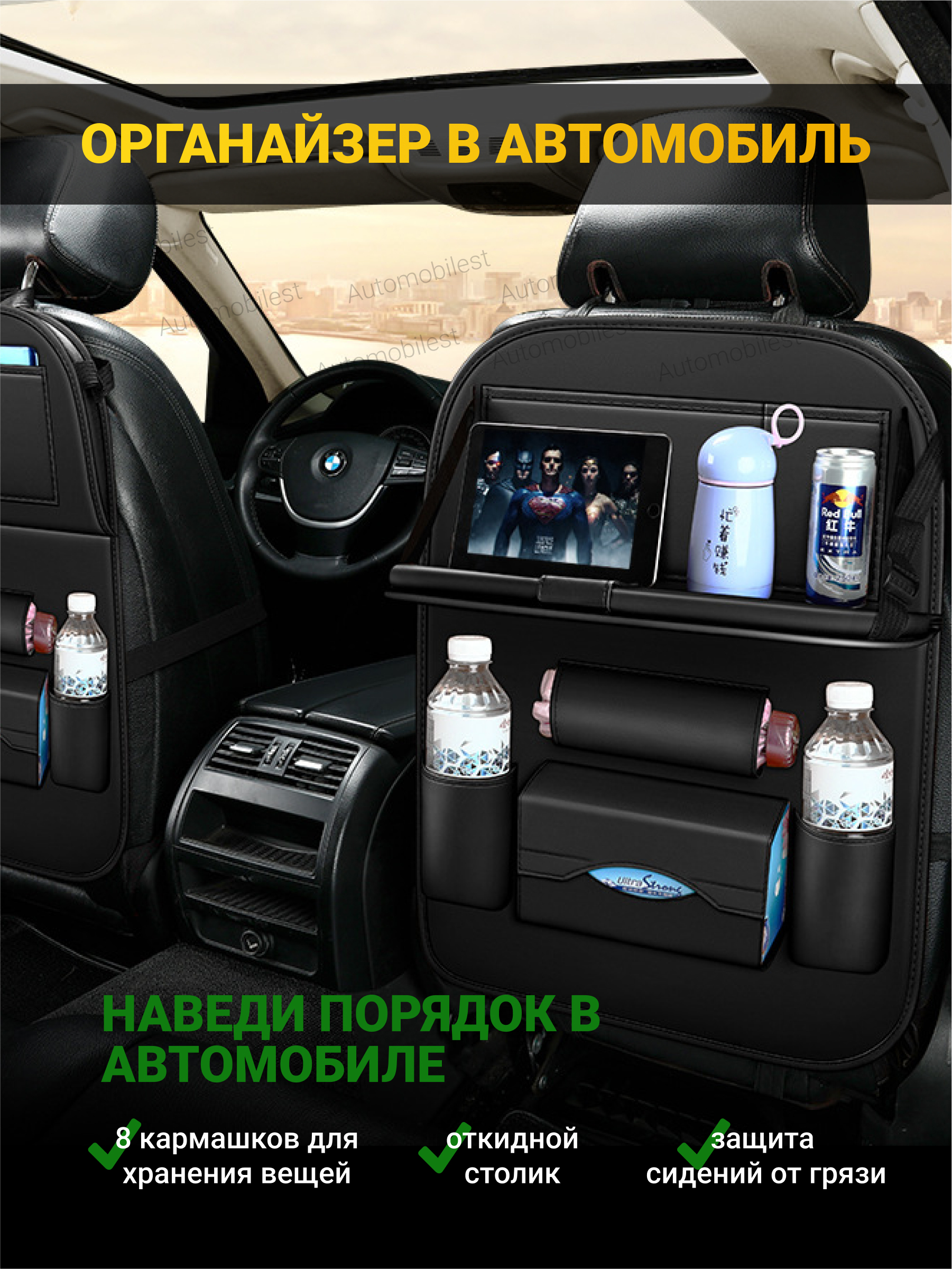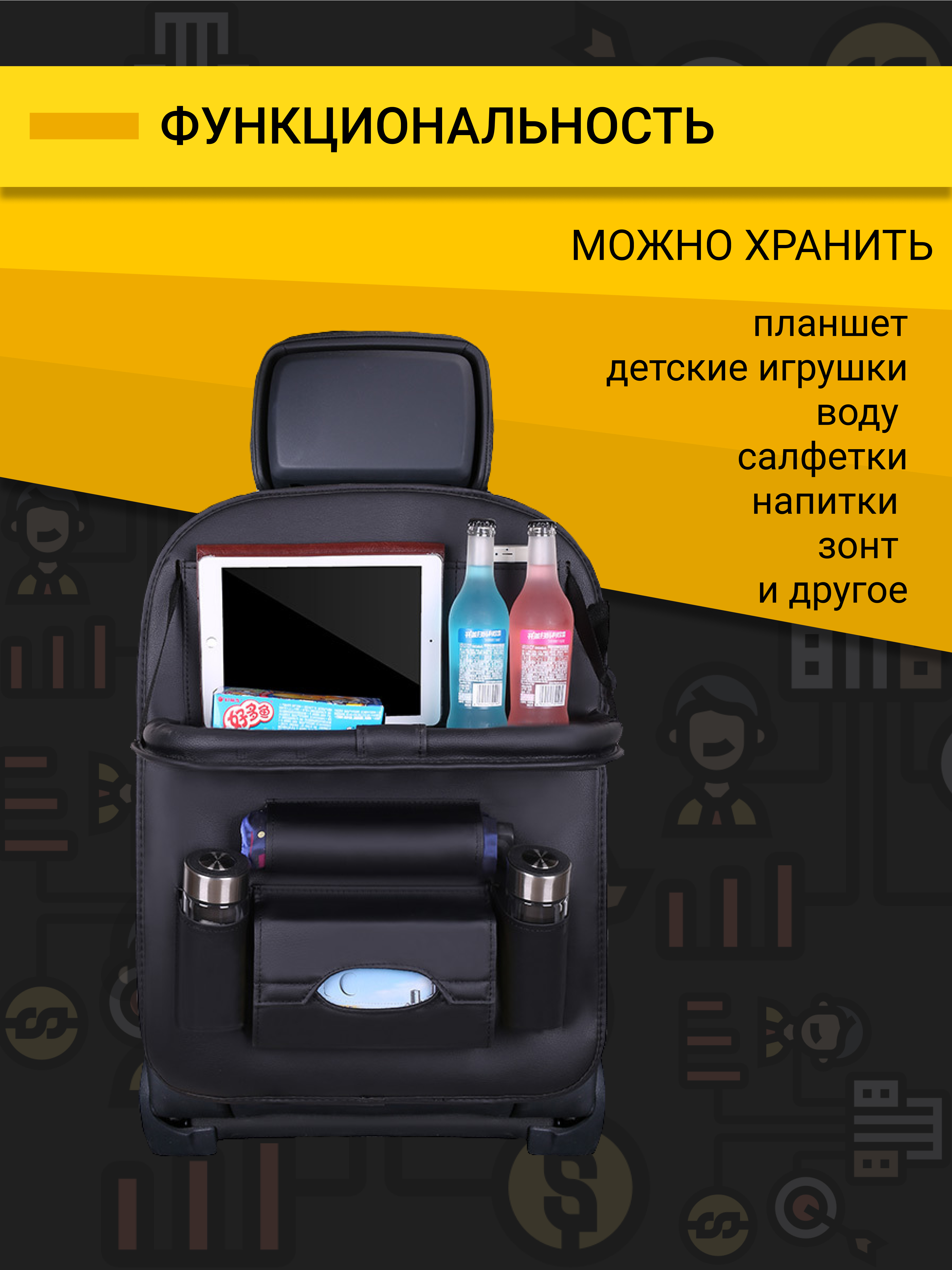 Органайзер на спинку сиденья автомобиля со столиком из экокожи