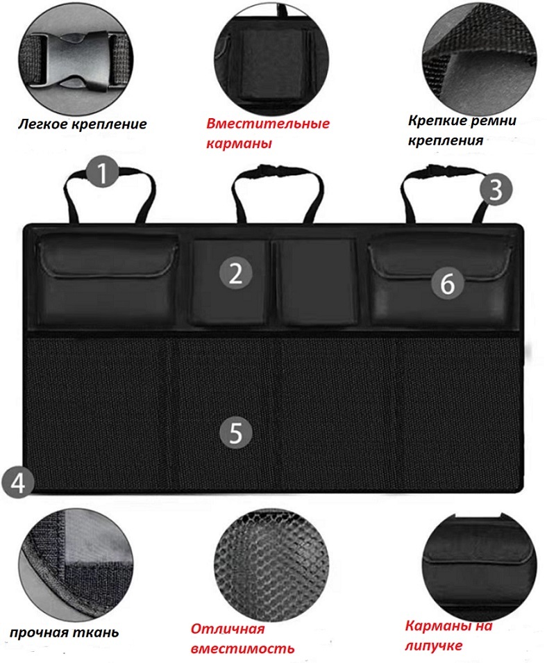 Автомобильный органайзер в багажник / ViceCar (красный кант)