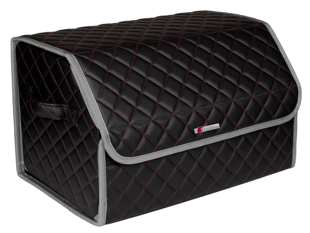 Автомобильный органайзер в багажник / с синей нитью ViceCar (черный кант)