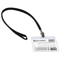 Бейдж BRAUBERG, 60х90 мм, горизонтальный, на черной ленте 45 см, 235697