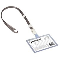 Бейдж школьника BRAUBERG, 55х90 мм, горизонтальный, на ленте со съемным клипом, серый, 235765