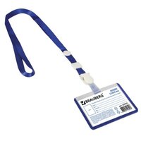 Бейдж школьника BRAUBERG, 55х90 мм, горизонтальный, на ленте со съемным клипом, синий, 235761