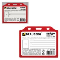 Бейдж BRAUBERG, 75х105 мм, горизонтальный, жесткокаркасный, без держателя, красный, 235751