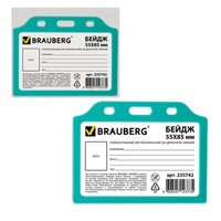 Бейдж BRAUBERG, 55х85 мм, горизонтальный, жесткокаркасный, без держателя, зеленый, 235742