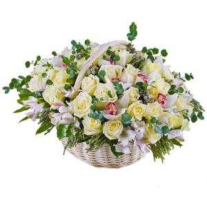 Букет "Корзина Орхидеи, розы, Альстромерия" Букет Орхидеи, розы, Альстромерии в корзине. (Голландия)