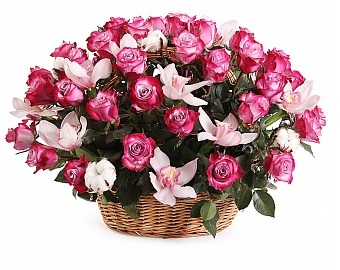 Букет в корзине 61 шт. Композиция Корзина из розовых роз и орхидей 50 см. (Кения)