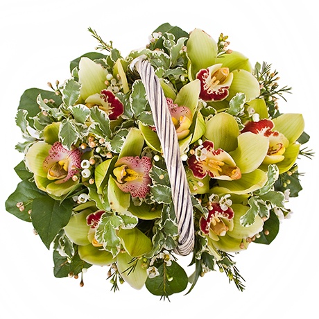 Букет в корзине цветы 31 шт. Композиция Корзина Орхидей, Гипсофила, в эвкалипте 50 см. (Кения)