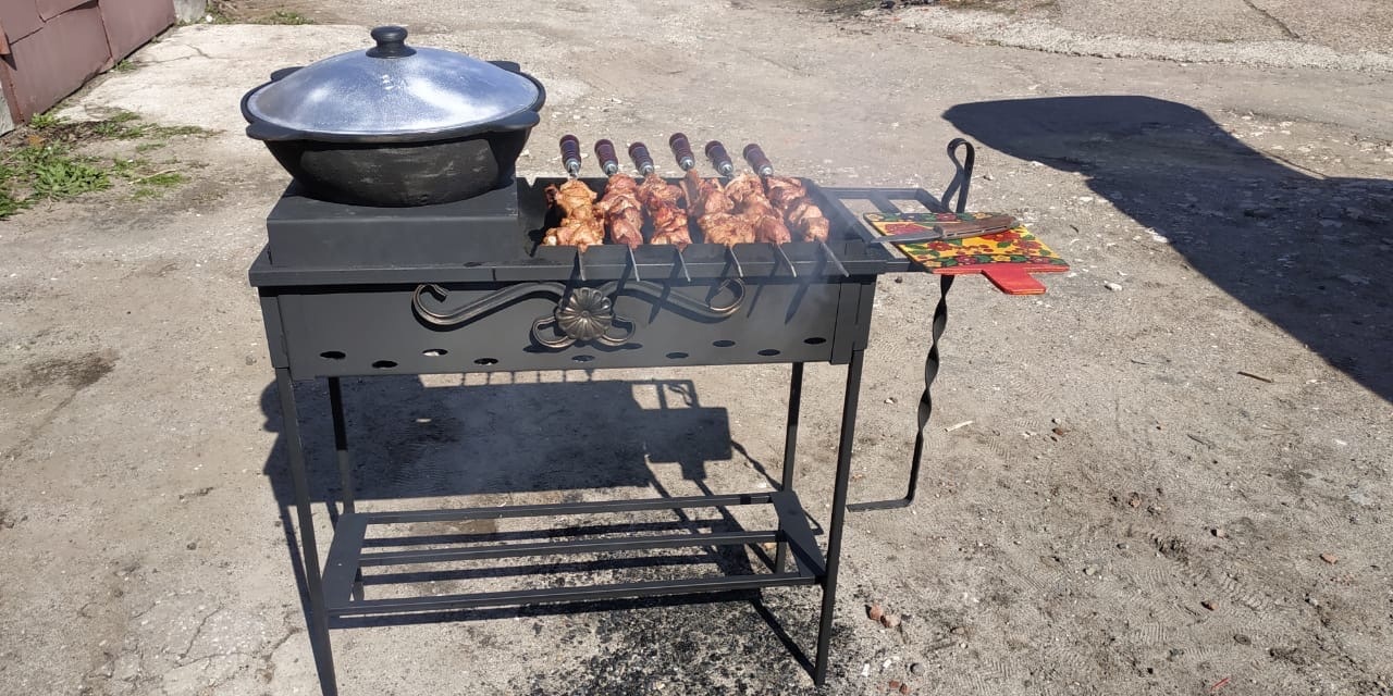 Мангал складной (2 mm) с шампурами из прочного металла многоразовый