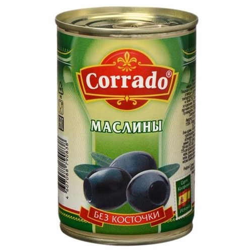 Corrado Маслины без косточки в рассоле, жестяная банка 300 г