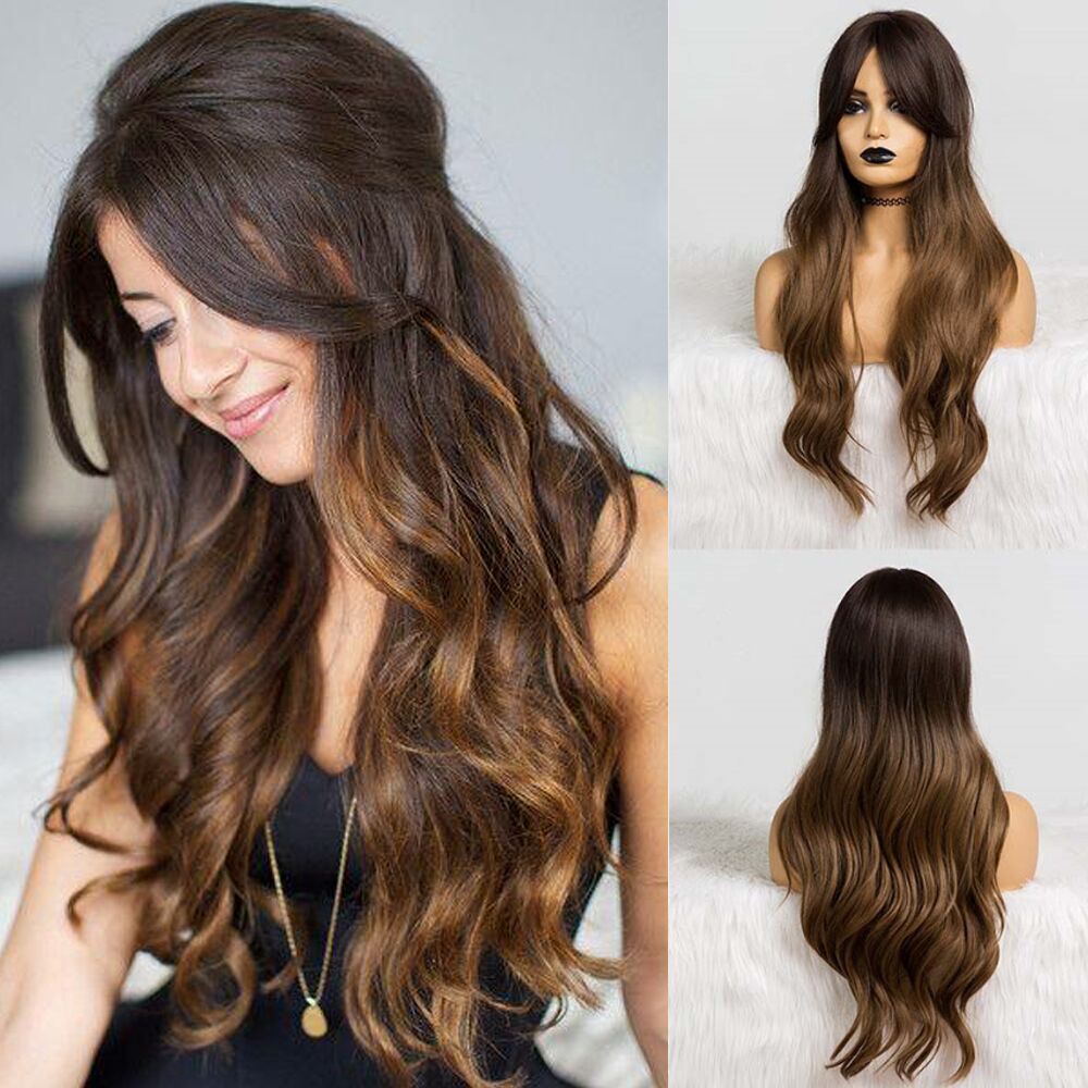 Короткий женский парик, коричневый синтетический многослойный парик с челкой