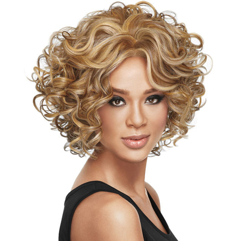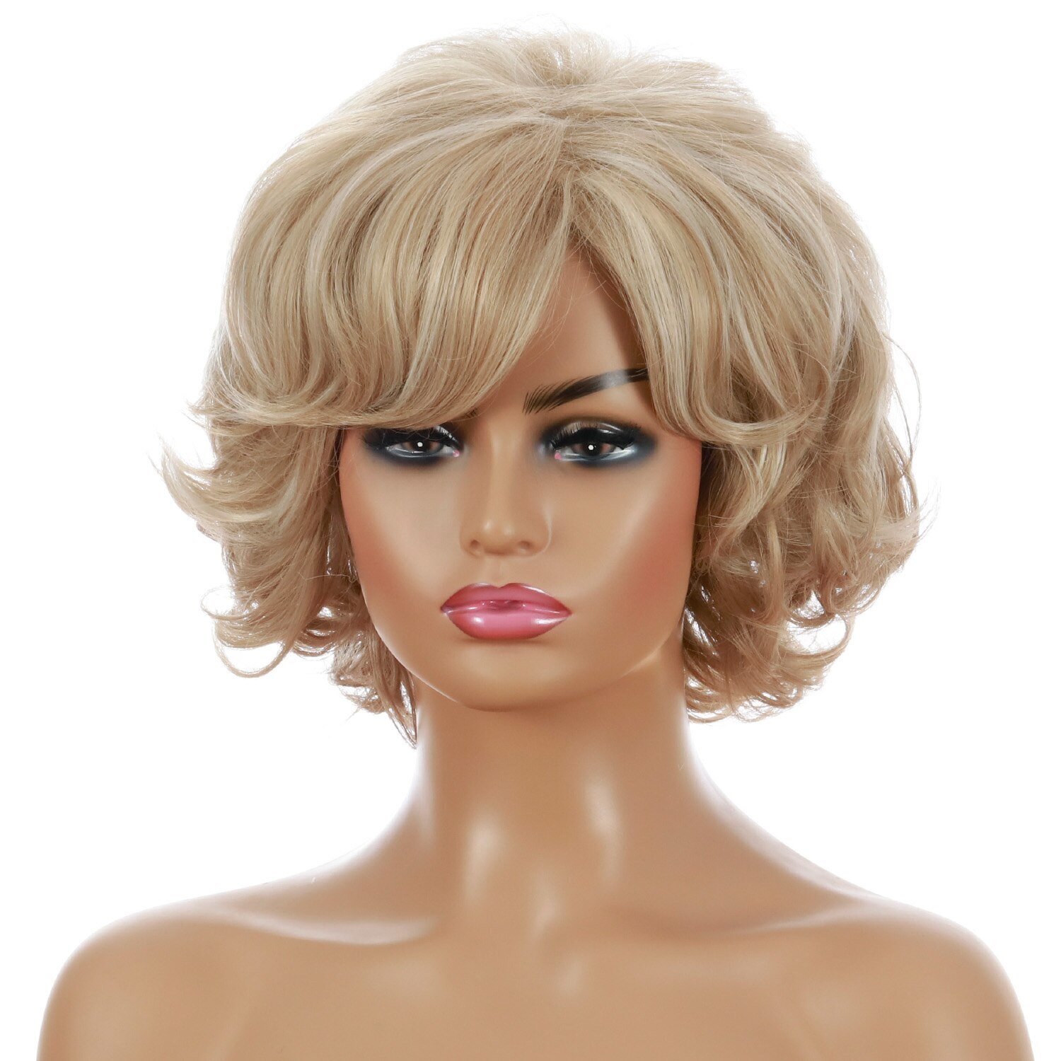 Женские короткие вьющиеся парики/парики из натуральной блондинки, повседневные парики
